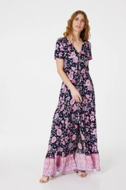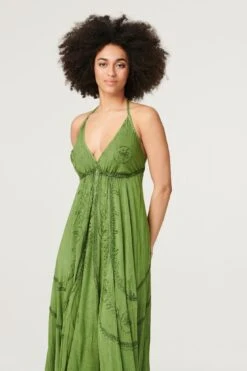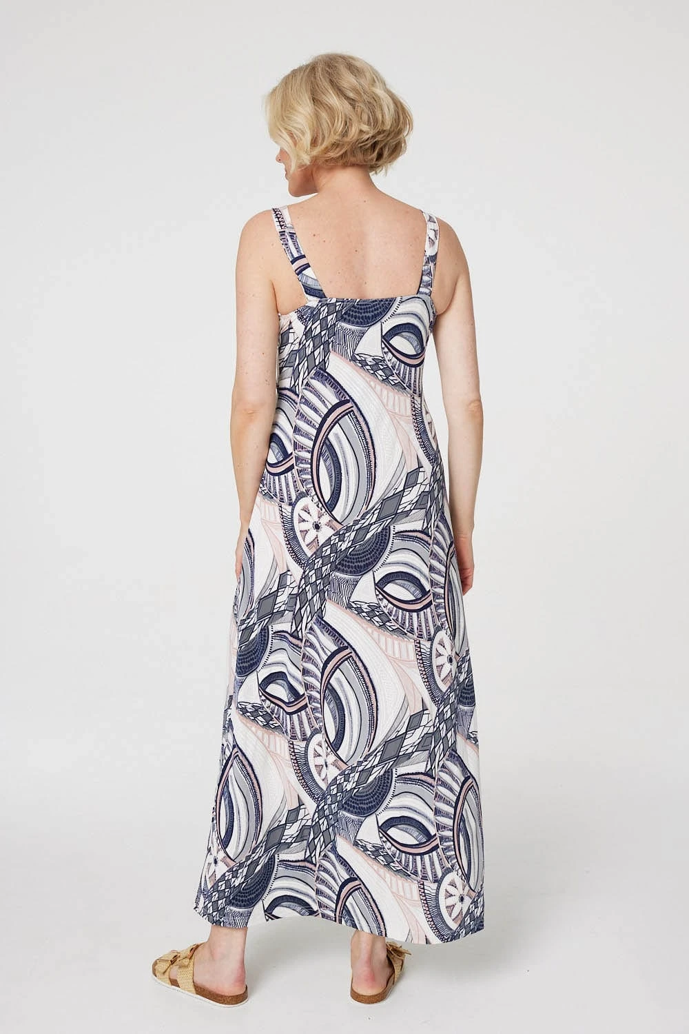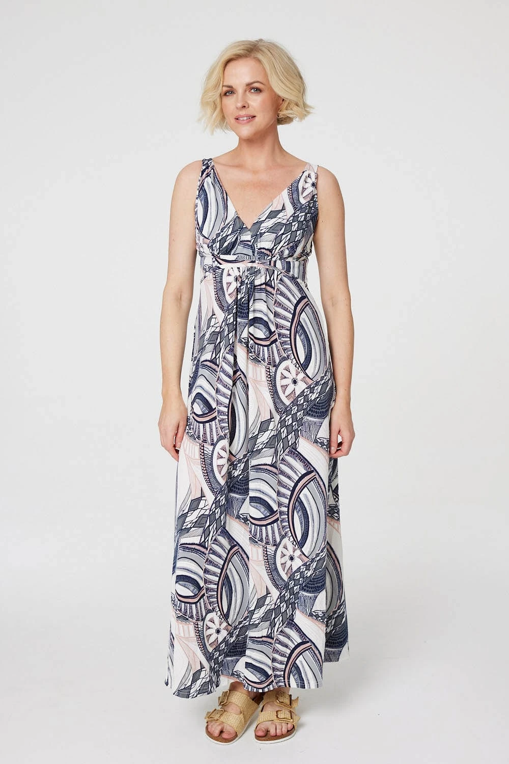 Every holiday collection needs a bold printed a-line maxi dress. With a v-neck, thick bra-friendly cami straps and a straight full length skirt. Pair with flat sandals for an effortless holiday outfit.
