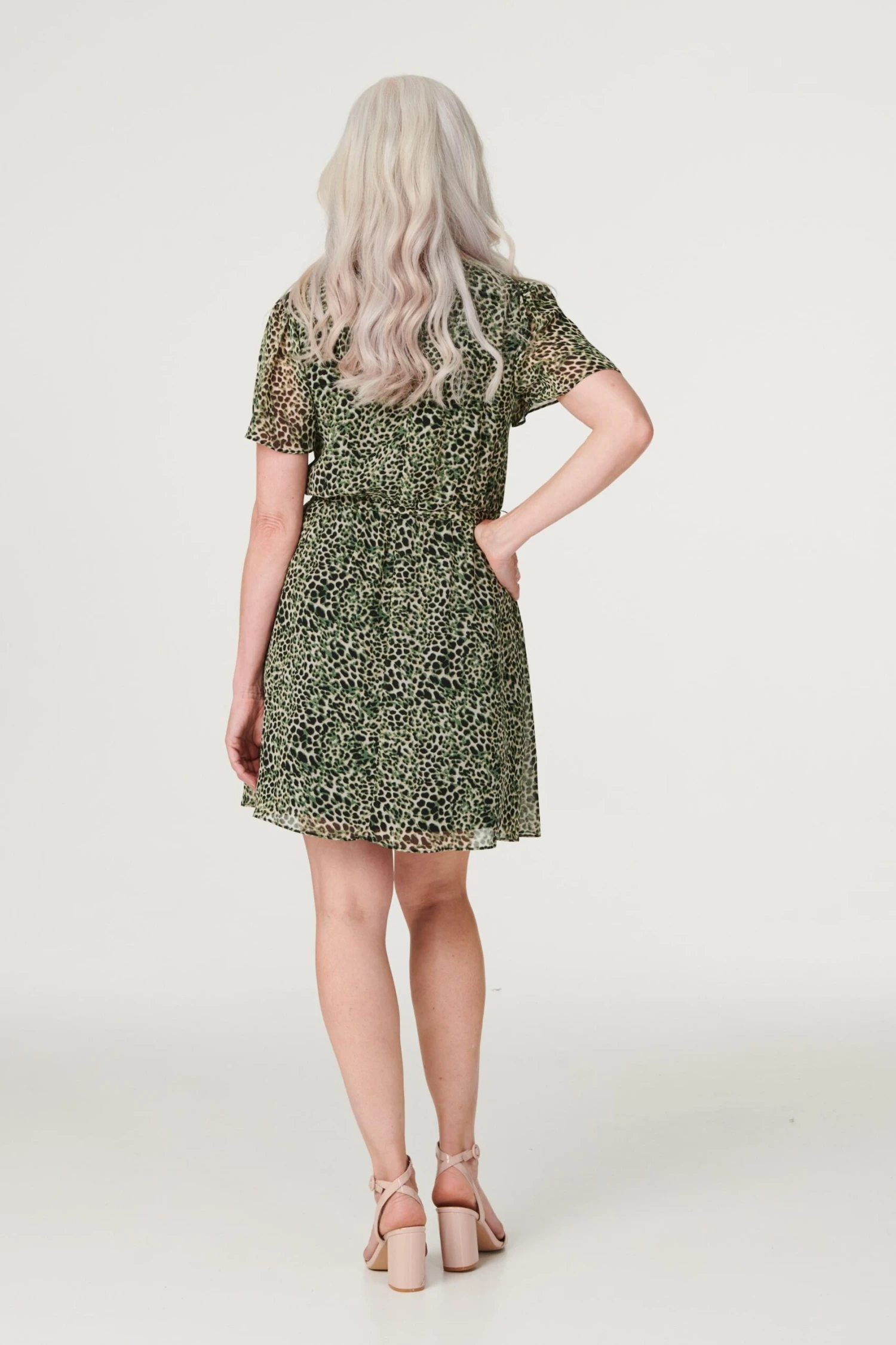 Go wild with this statement leopard print skater dress. It has a round neck, short angel sleeves, an elasticated waist with a detachable self-tie belt and a short skirt. Pair with neutral heels for an occasion wear style with the wow factor.