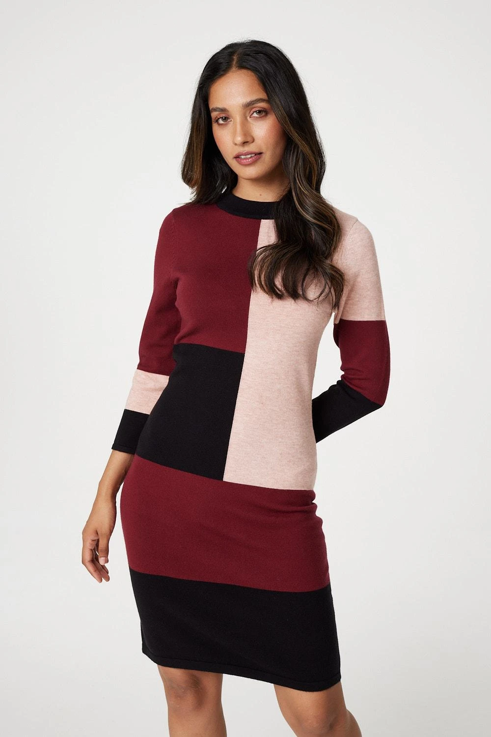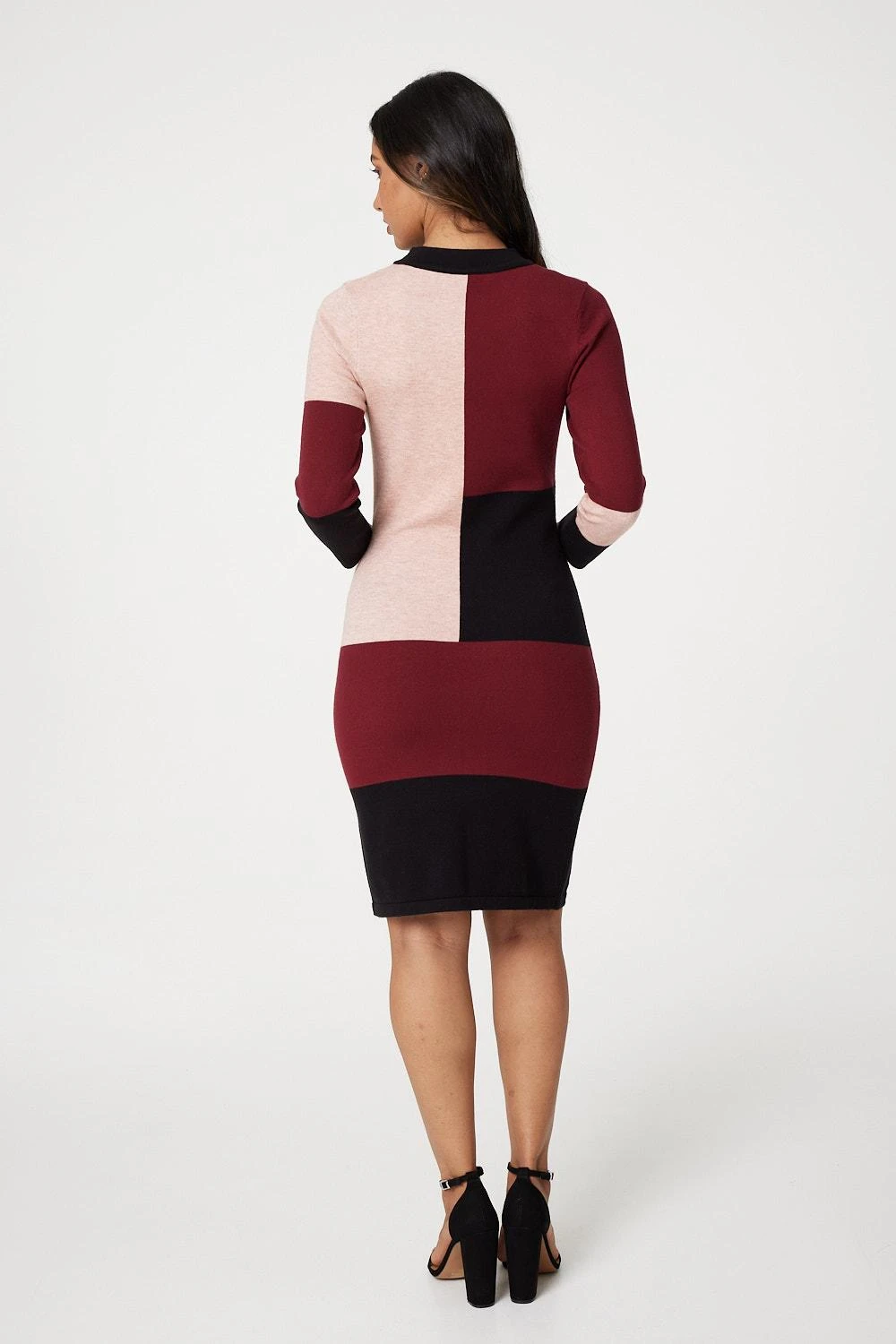 As the weather turns colder, add a warm knitted dress to your wardrobe like this one. It has a round neck, 3/4 sleeves, a bodycon silhouette and a short hem. Pair with heels or ankle boots for an elegant style that’s both timeless and classic.