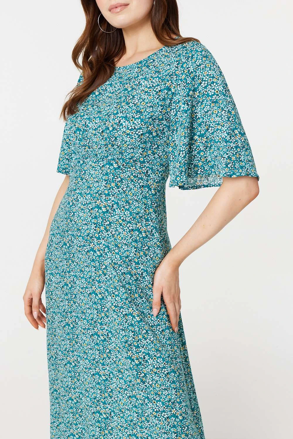 Nothing beats the classic vintage style of this midi dress. It has 1/2 angel sleeves and a round neck, with a flattering column fit that will elongate your silhouette. Complete with a keyhole back and ditsy floral print, this dress is sure to leave you feeling fresh and stylish.