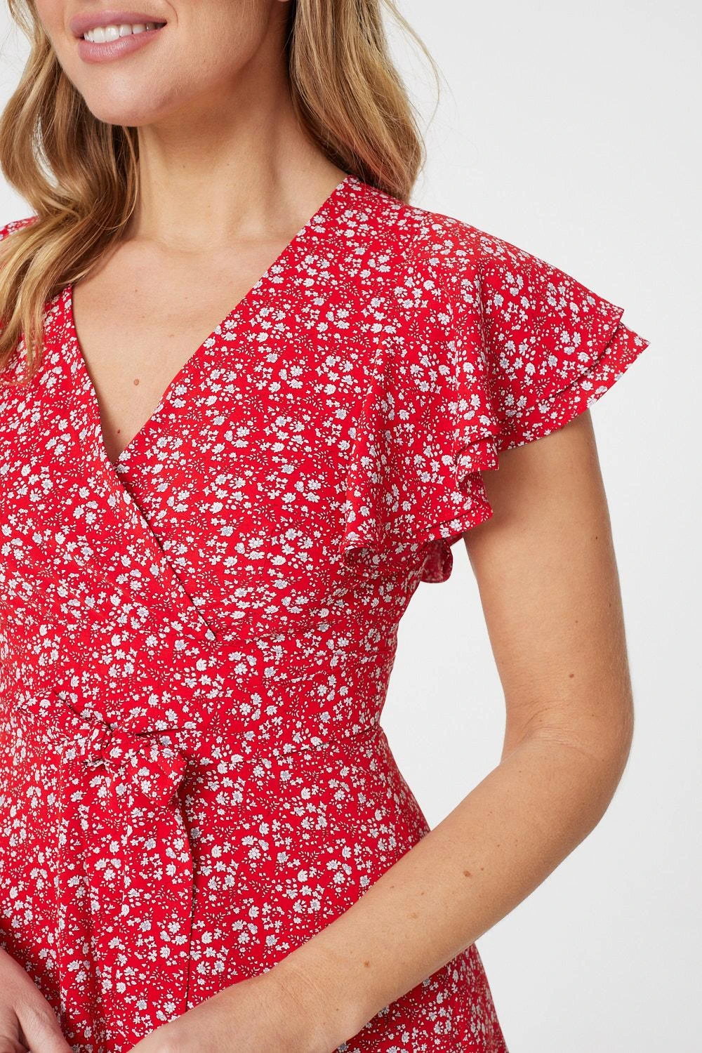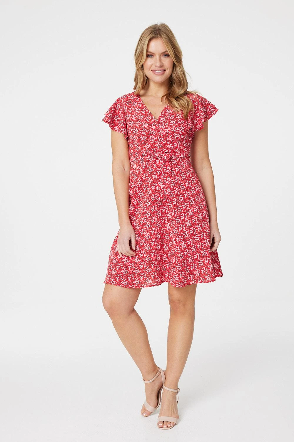 Add a floral print to your dress collection with this wrap front skater dress. It has a v-neck, wrap front, self tie waist detail, short frilled sleeves and a short skater skirt. Pair with neutral heels for a stylish warm weather look that’s great for lunch out with friends.