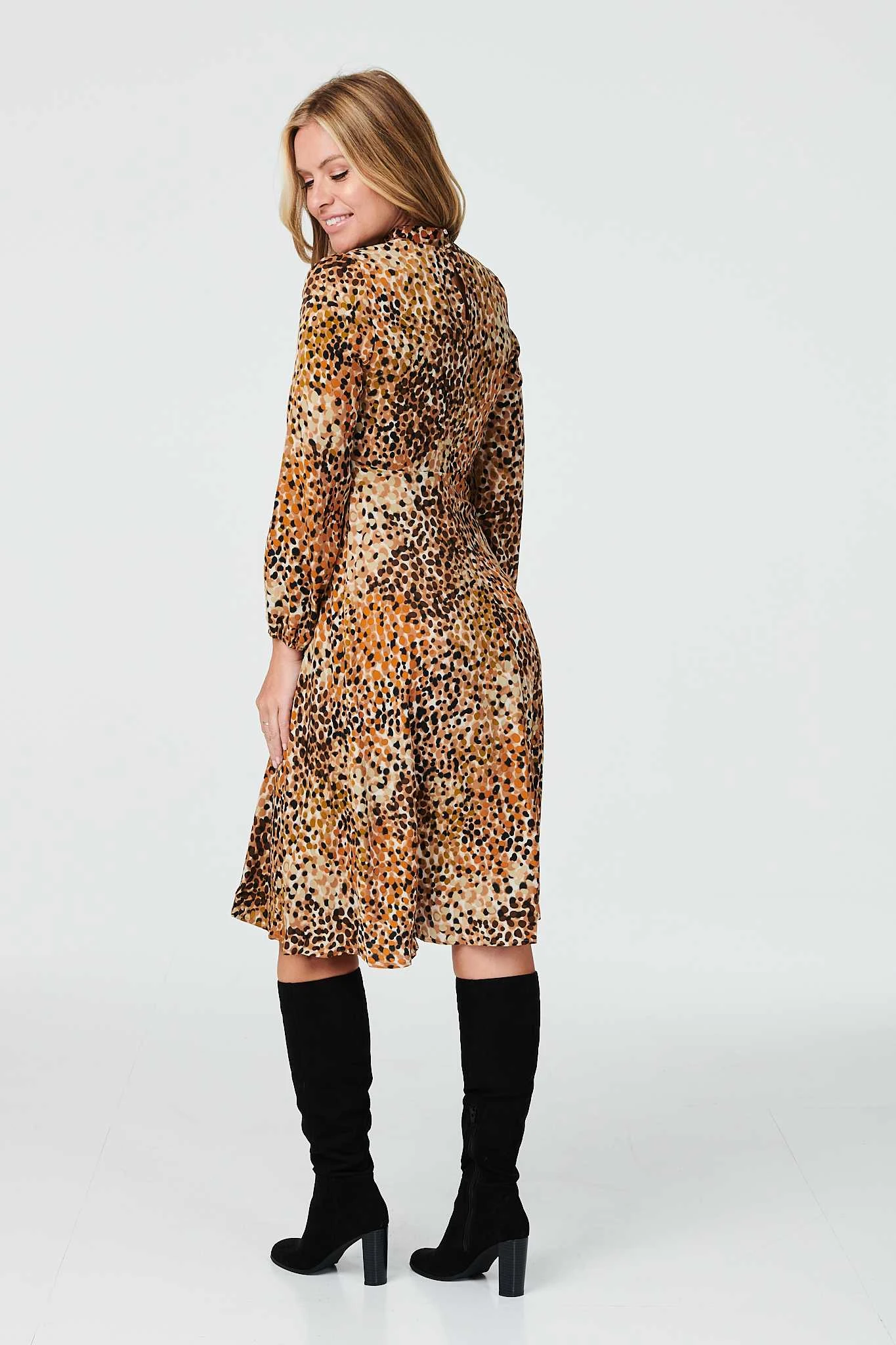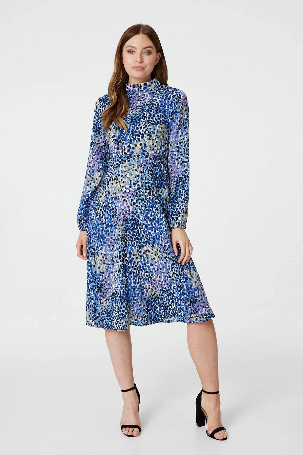Stand out from the crowd in this ditsy printed tea dress. With a high round neck, a keyhole back detail, long sleeves and a flattering midi length skirt. Style with pointed heels and a tailored blazer for the office or with heeled wedges for a casual lunch look.