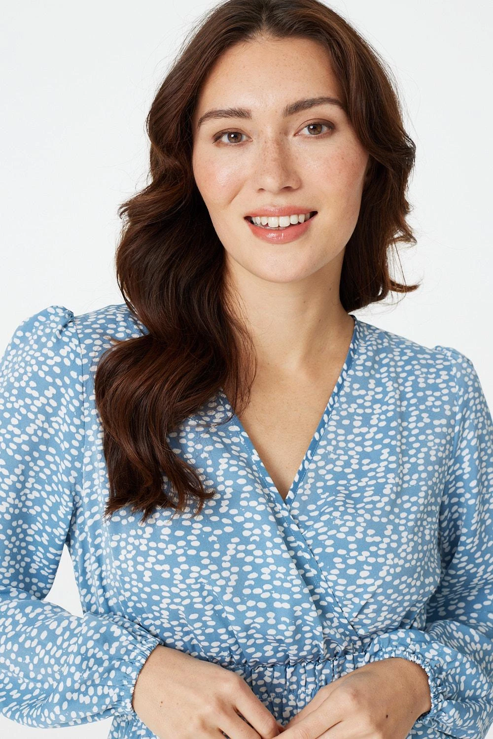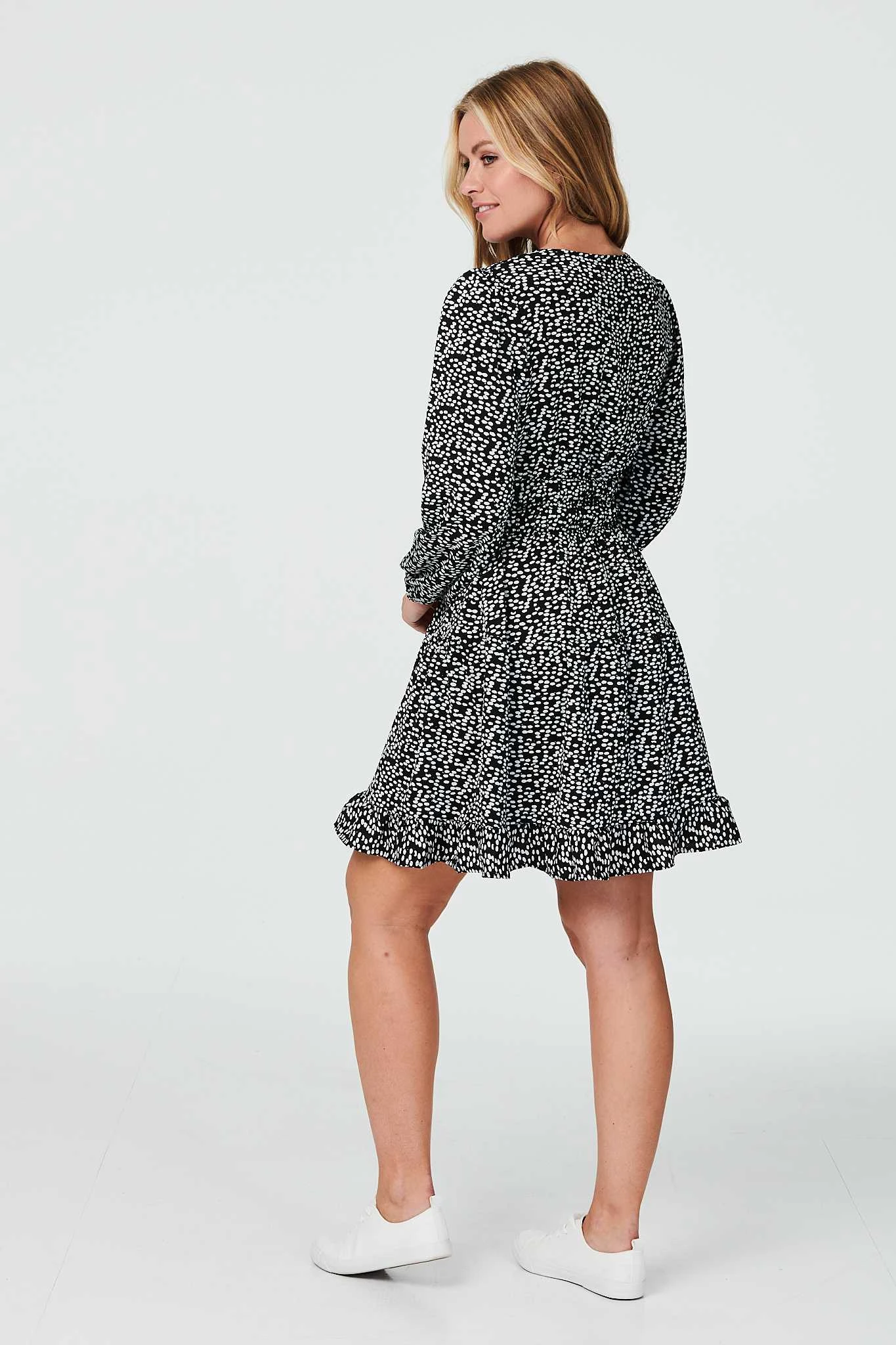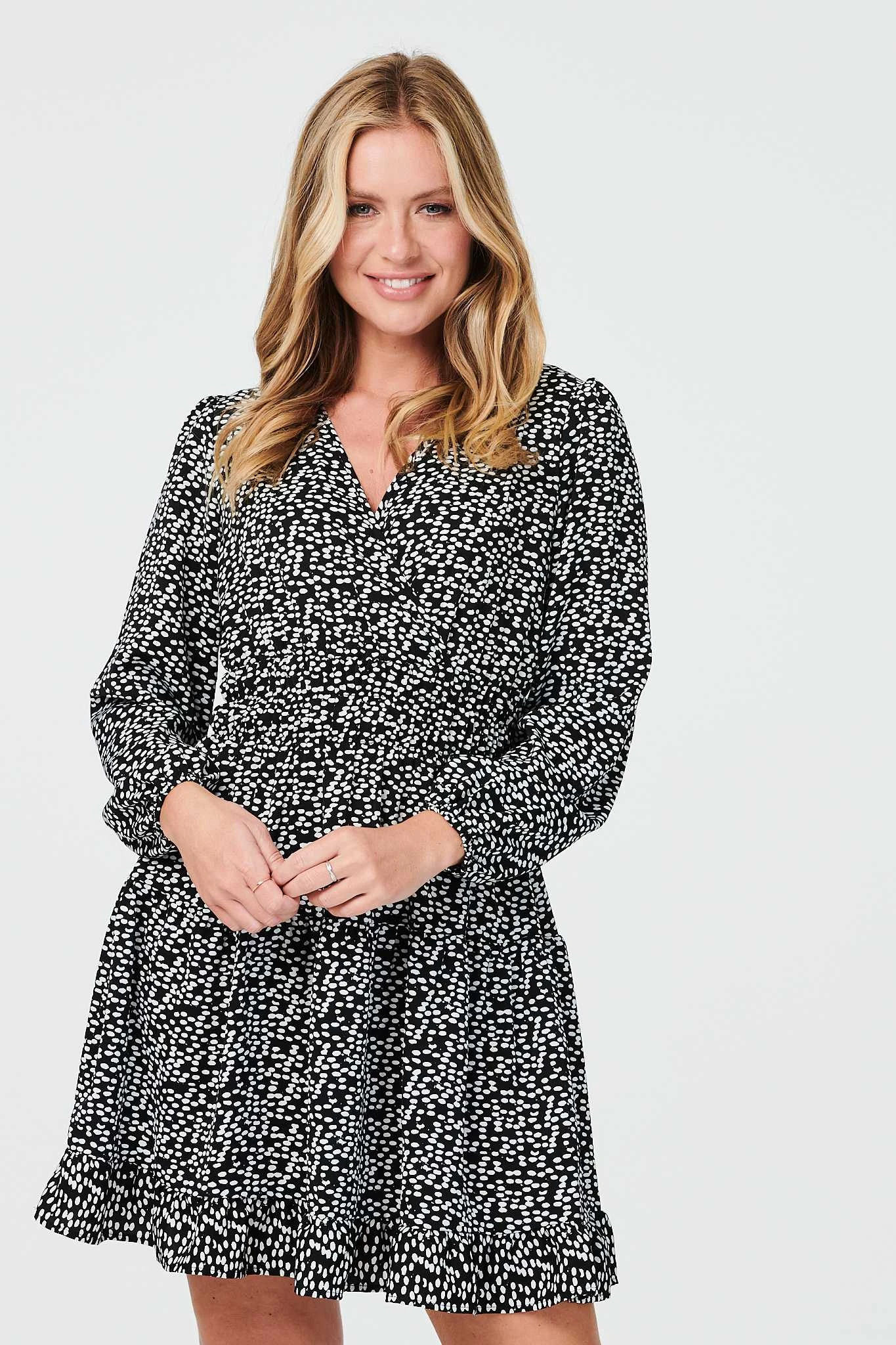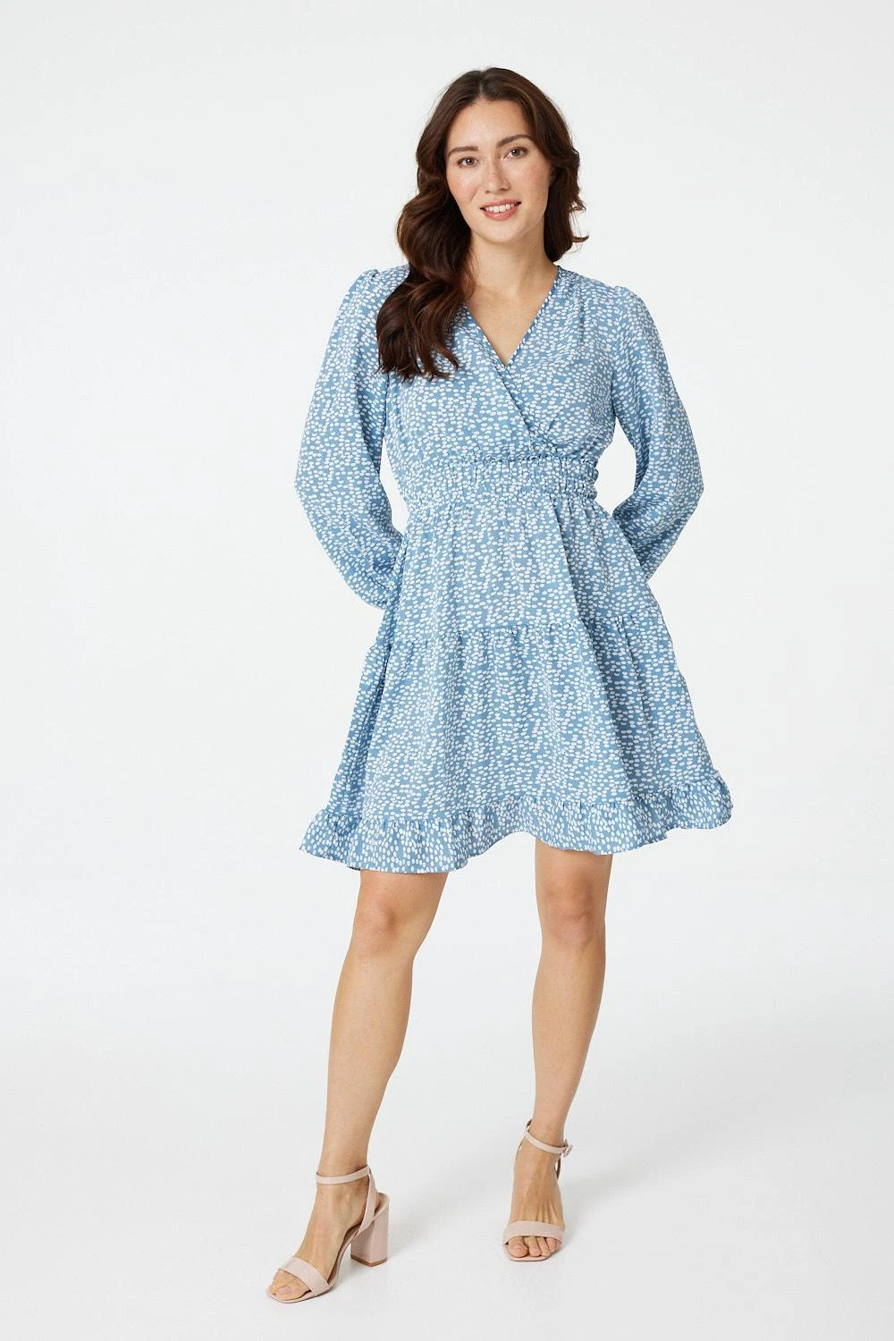 Add a picture-perfect floral skater dress to your closet. With a v-neck, long sleeves, a cinched waist and a knee length skirt. Dress down with trainers or dress up with strappy heels.