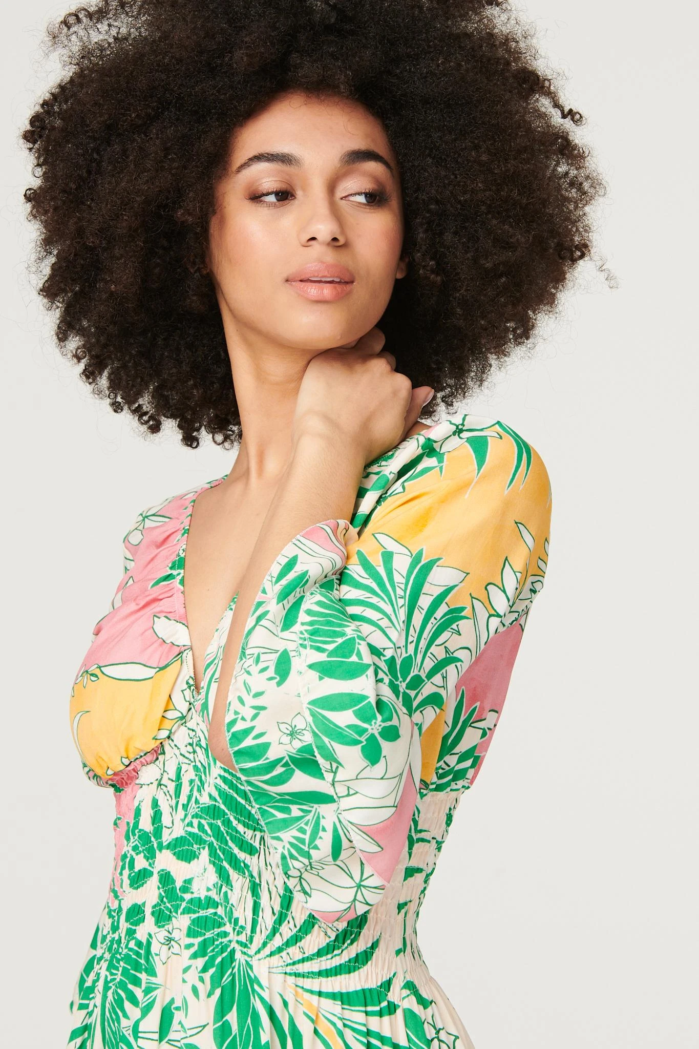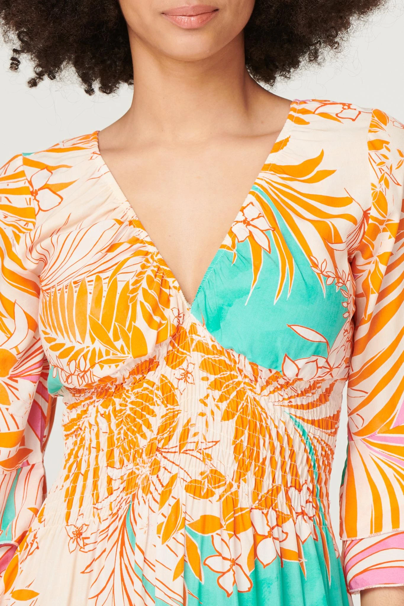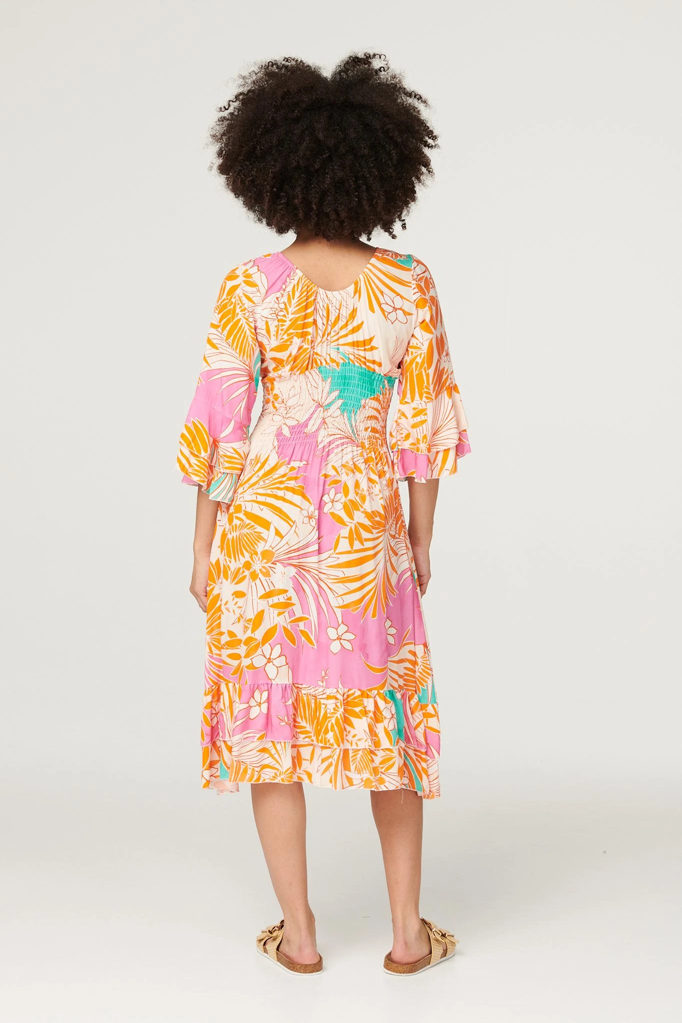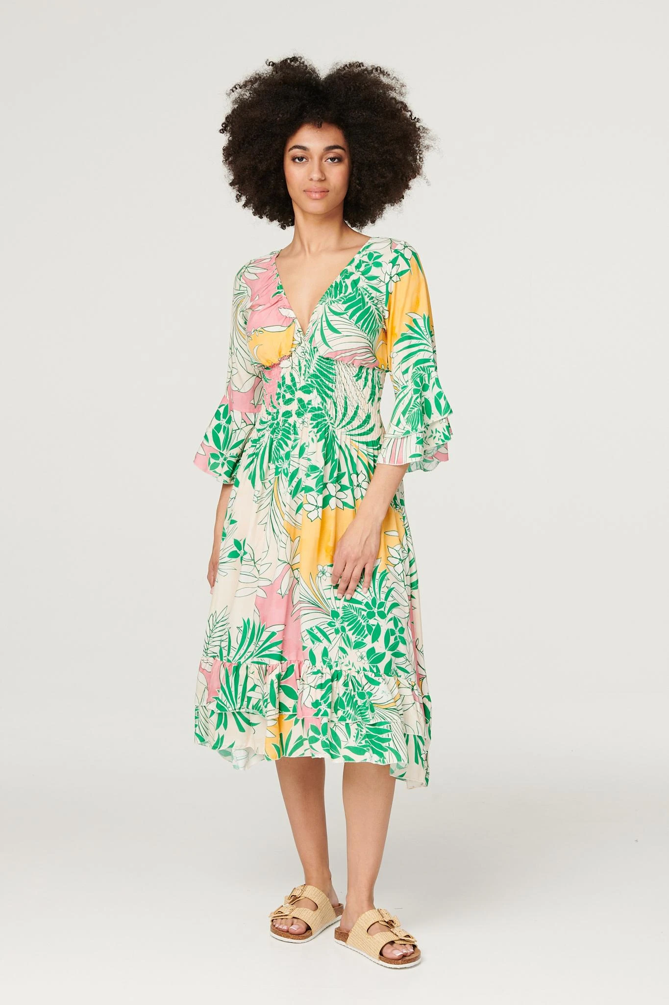Every holiday capsule wardrobe needs a bold printed dress like this one. It has a V-neck, 3/4 flared sleeves, a shirred waist and a midi length hem. Made from 100% viscose it’s both lightweight and breathable. Pair with sandals or heeled wedges for a vibrant warm weather style.