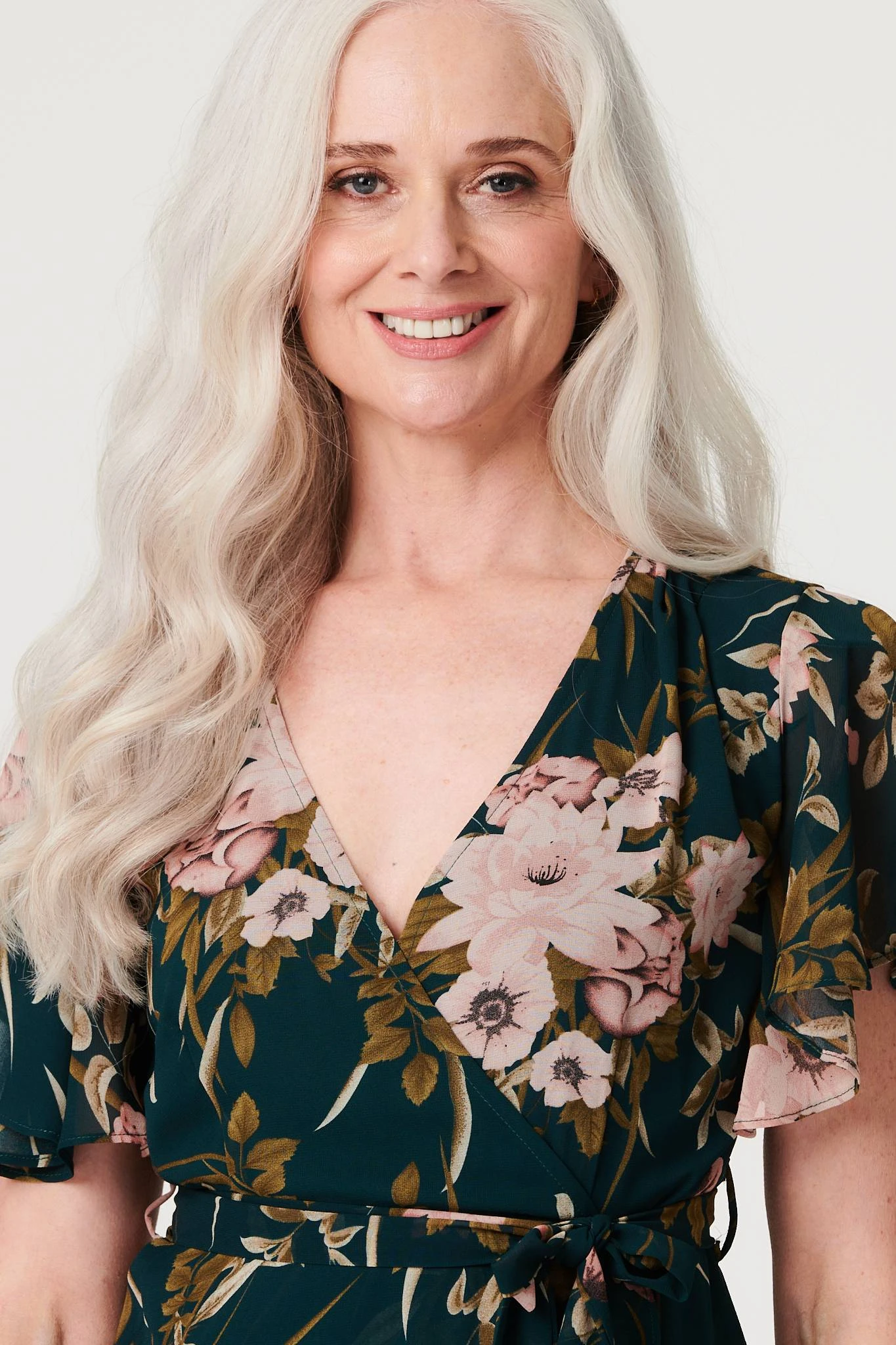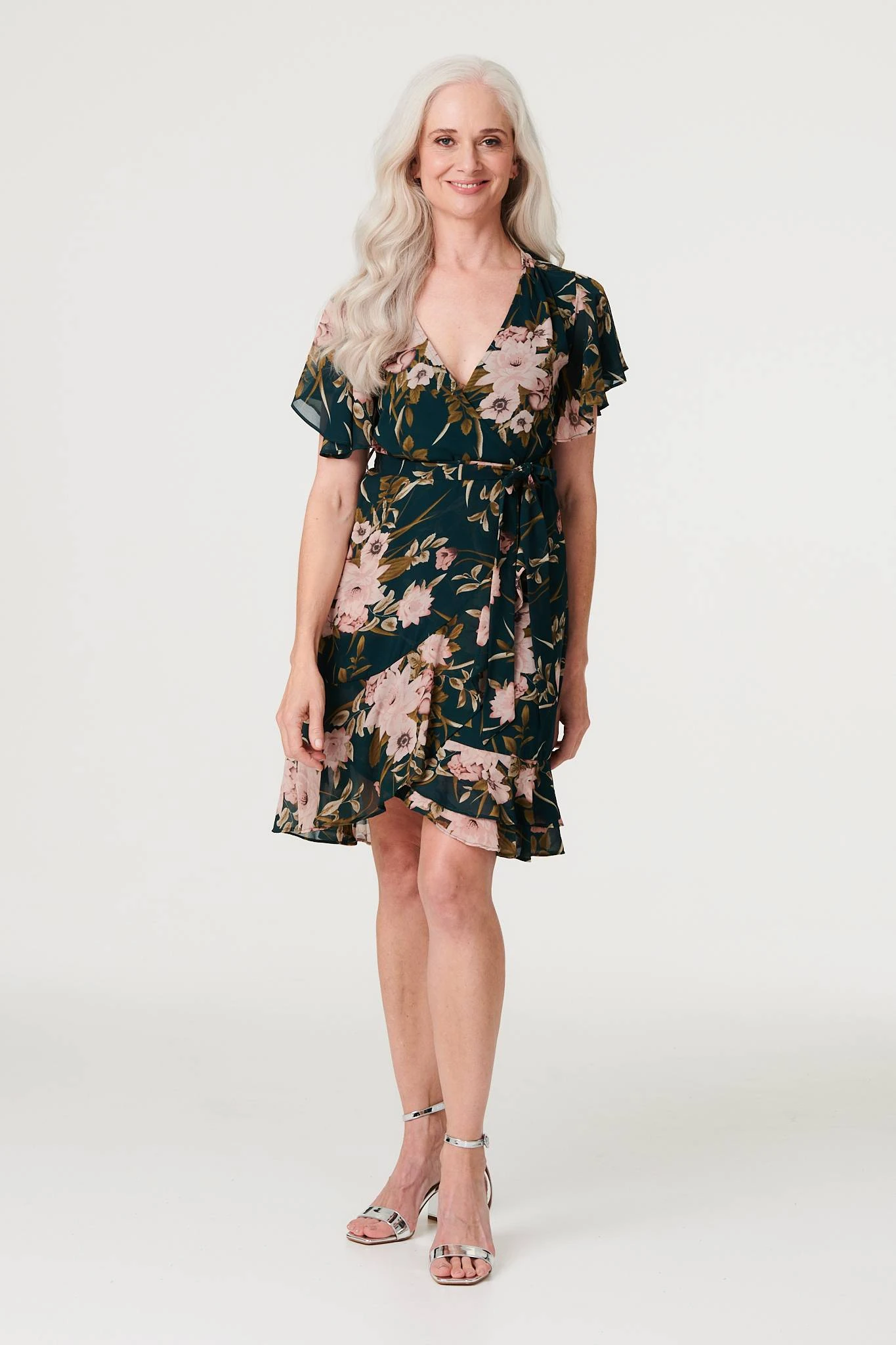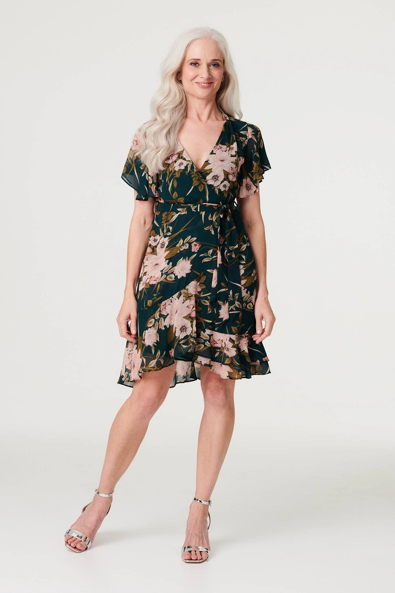 When the event calls for a shorter dress, we’ve got you covered with this beautiful wrap dress. It has a short ruffled hem and frill flare short sleeves, and a flattering v-neck. Adjust the waist tie for that hourglass silhouette.