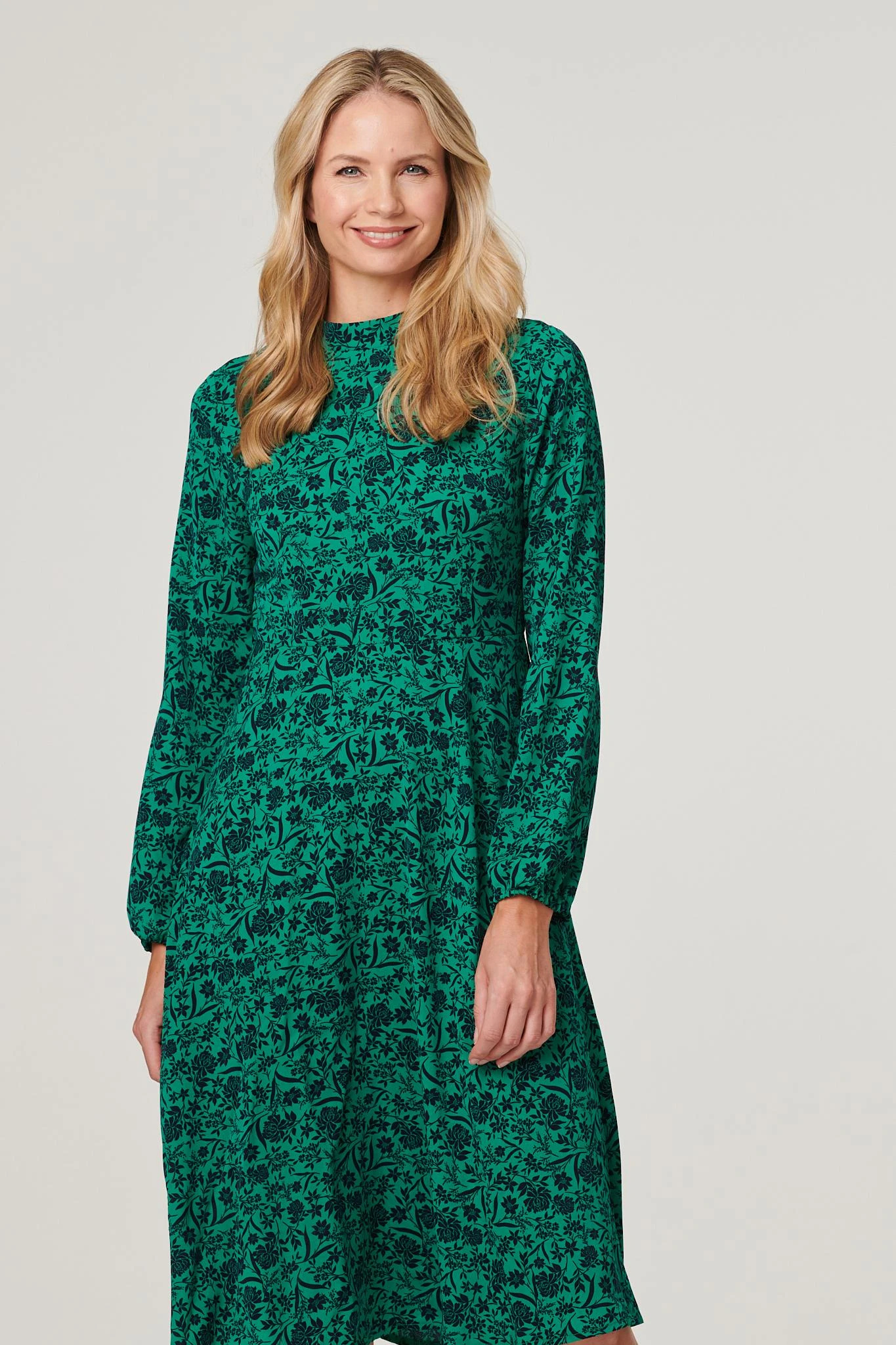 Every new season wardrobe needs a go-to tea dress like this one. It has a high neck, a keyhole button detail back, long sleeves with elasticated cuffs, a cinched waist, fit & flare silhouette and a midi length hem dropping just below the knee. Pair with neutral heels or boots for a chic style you can wear to almost any daytime occasion.
