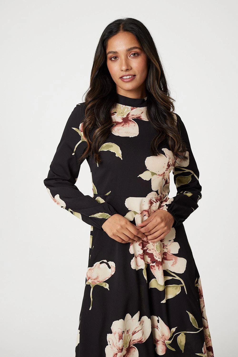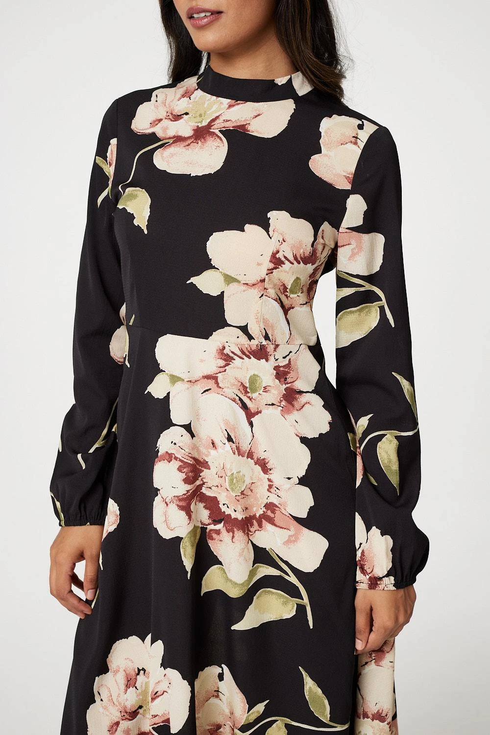 Add a bold floral print to your closet with this statement-making midi dress. It has a high neck, long sleeves, a straight silhouette and a midi length hem. Pair with elegant heels for a sophisticated style that’s perfect for a daytime occasion.