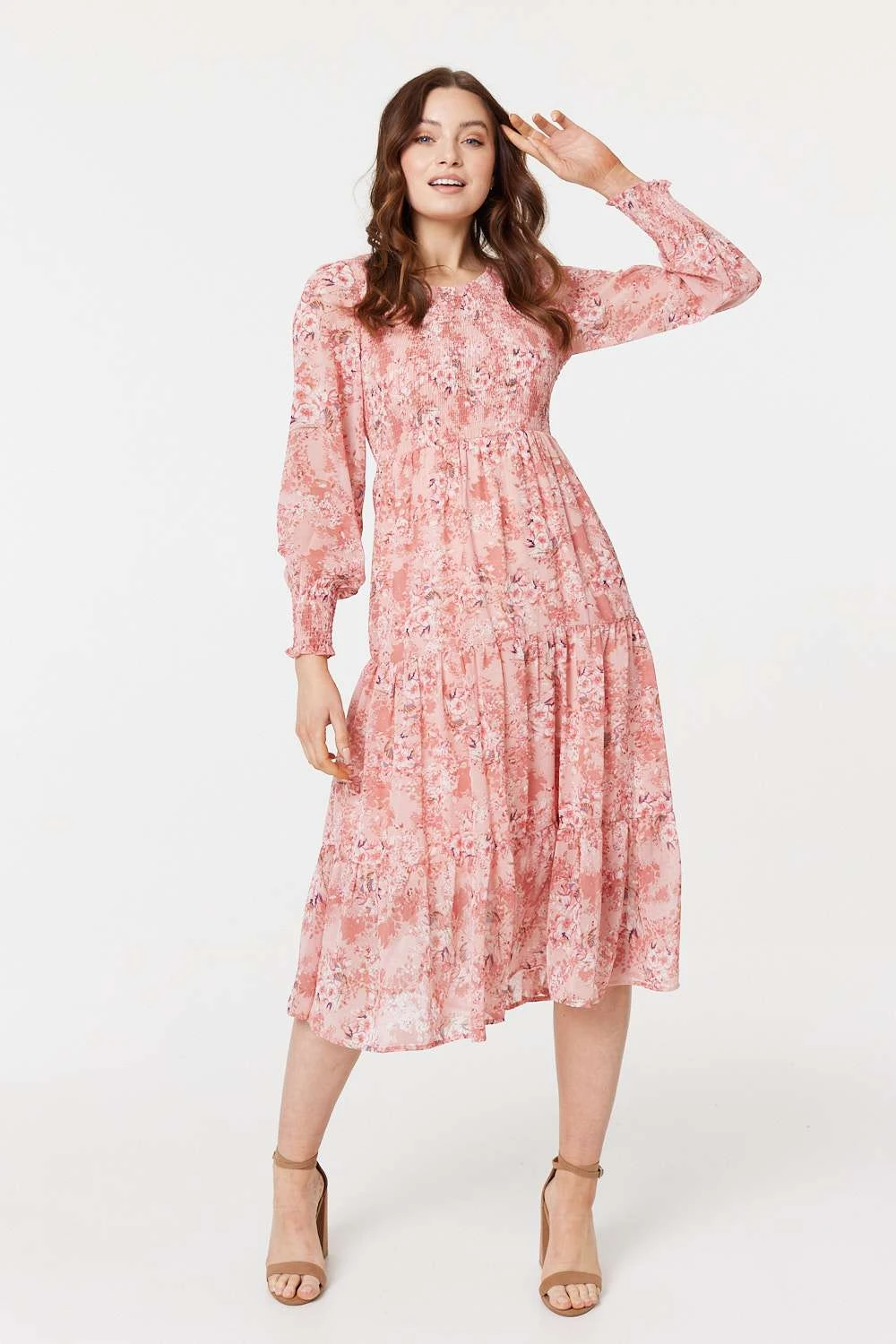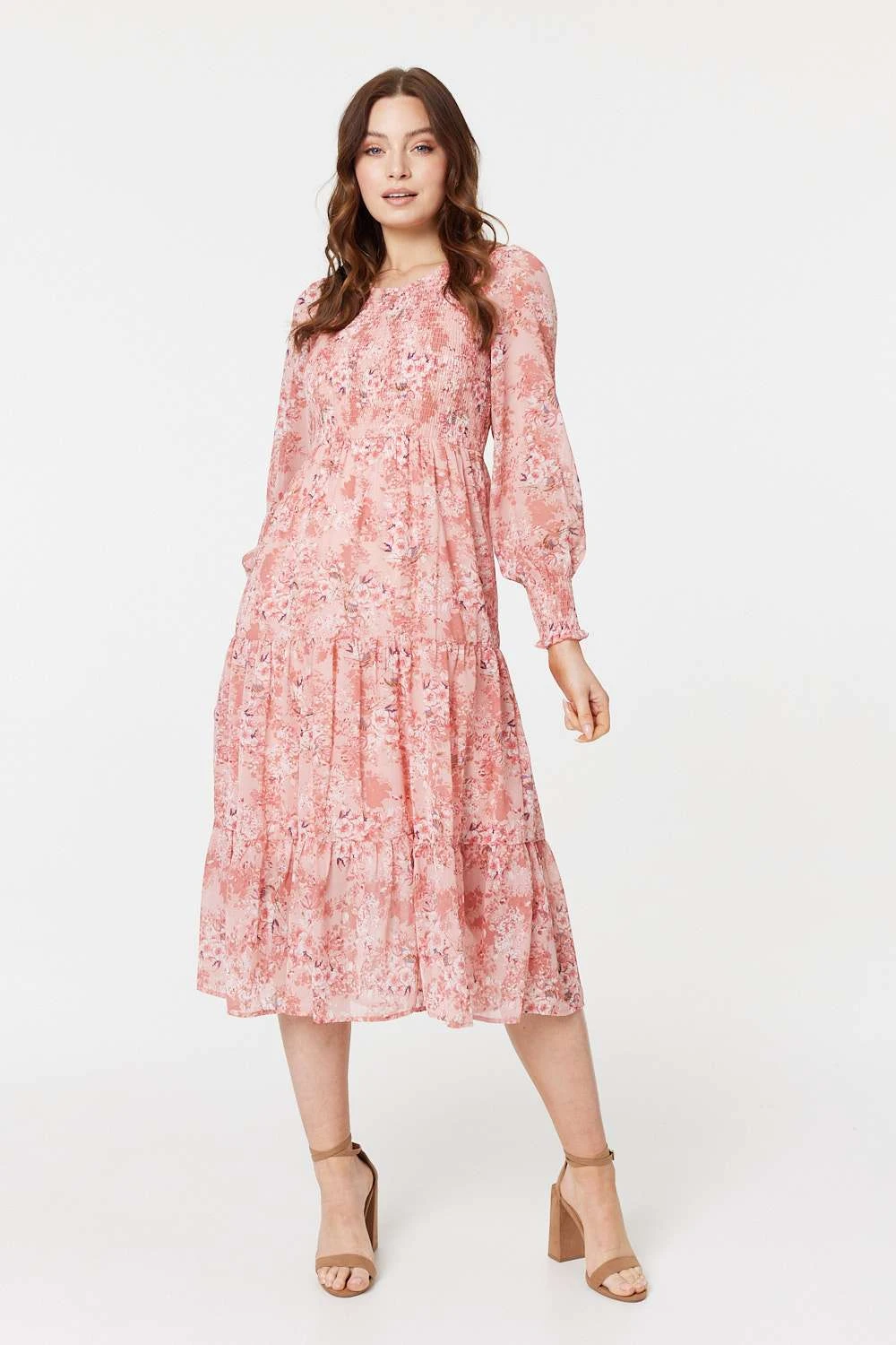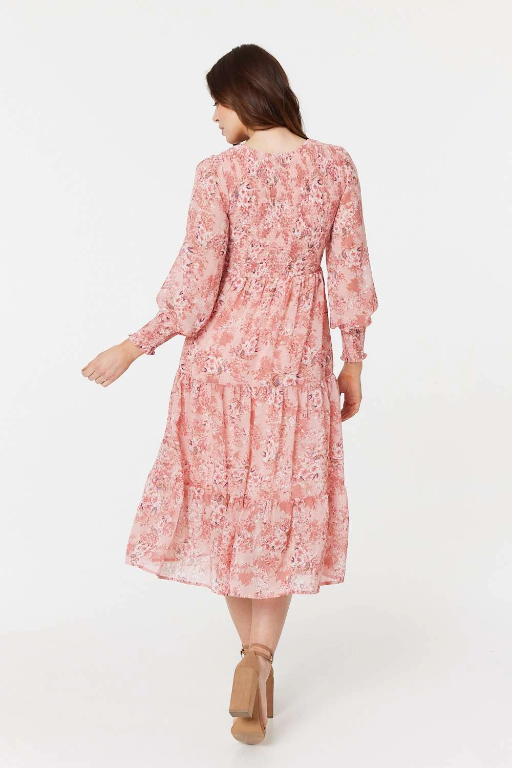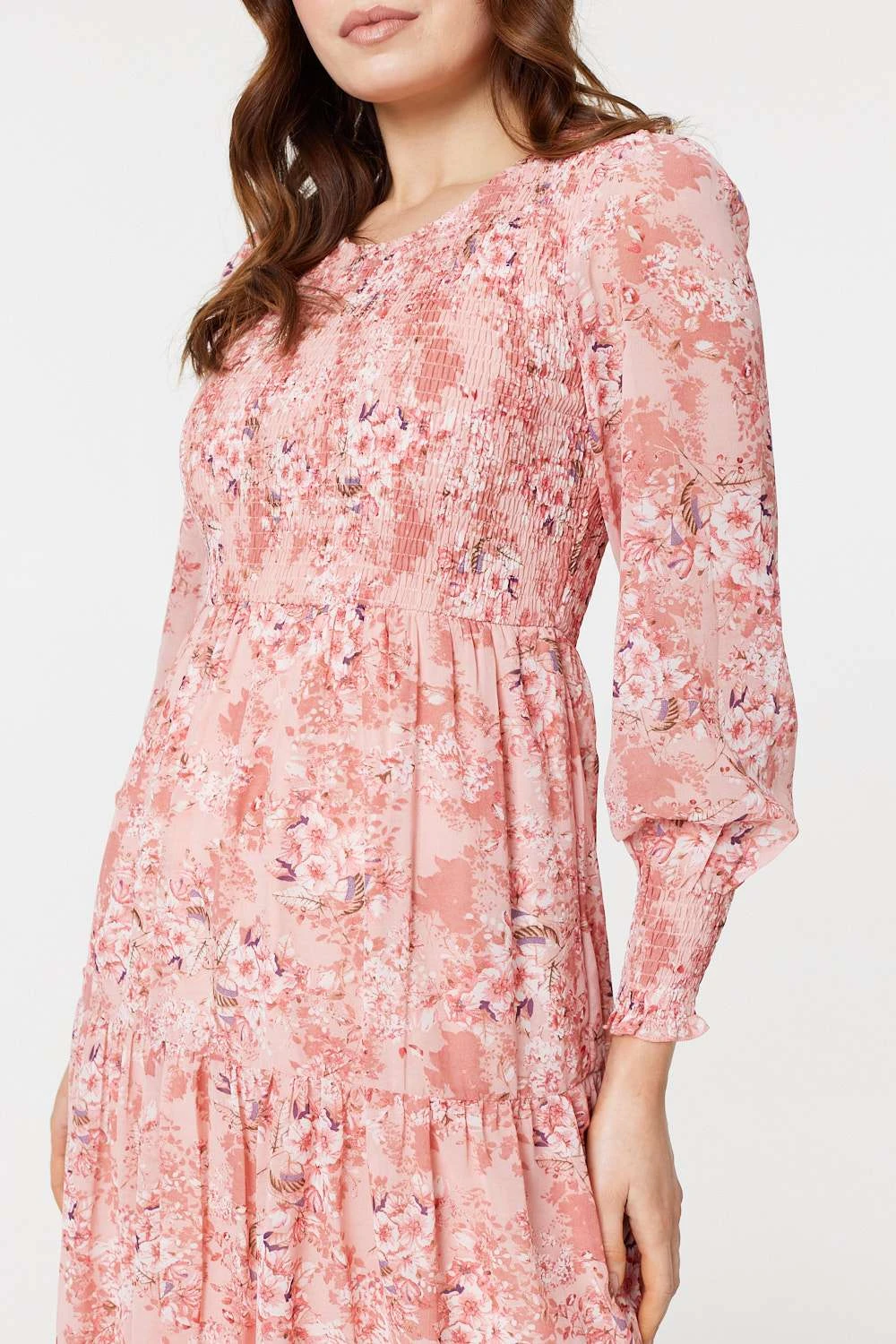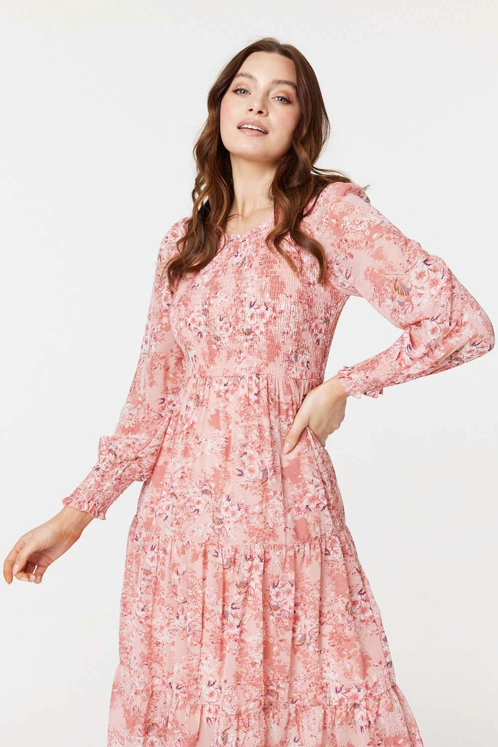 Stay effortlessly chic on a sunny day when you wear this midi smock dress. It’s perfect for the summer months with its semi sheer sleeves, shirred cuffs, tiered skirt and smocked bodice complete with a round neck. Stay cool in sandals or get the full boho look with cowboy boots and a sunhat.
