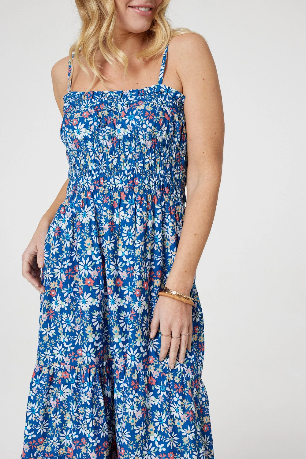 Soak up the sun rays in this gorgeous midi dress. It’s made from 100% cotton and has comfortable spaghetti straps, with a tiered midi skirt and shirred waist. Pair with sandals for a stylish walk on the beach.