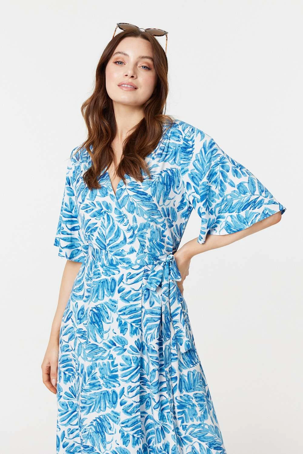 You’re sure to feel laid back and elegant in this beautiful wrap dress. It has 1/2 flared sleeves, a midi length hem and a flattering wrap tie waist with a v-neck. Dress down with sandals or up with heels and your favourite jewellery.