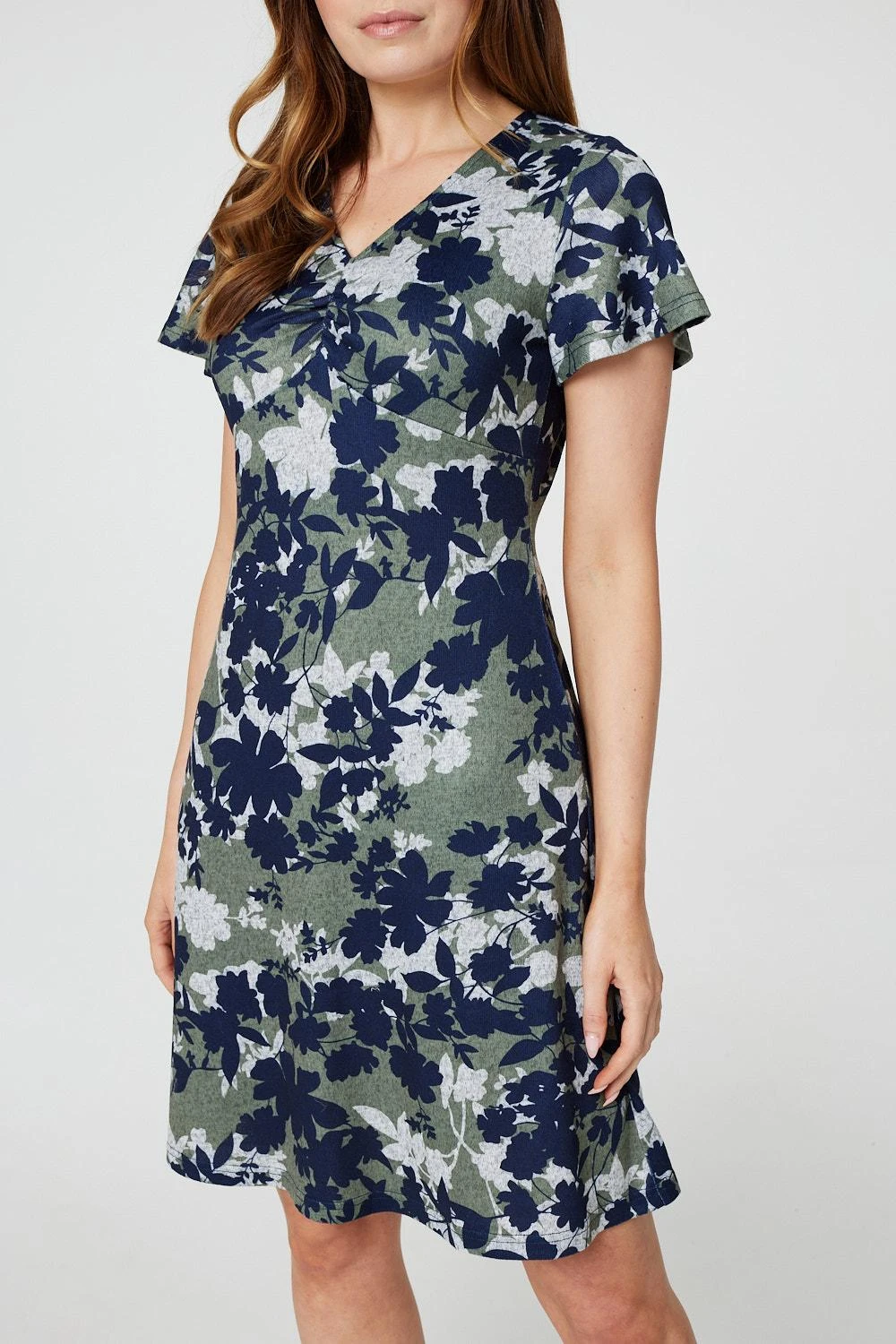 Every capsule closet needs a go-to casual dress like this one. With a v-neck, short sleeves and a short skater skirt. Pair with fresh trainers and layer with a denim jacket to complete your look.