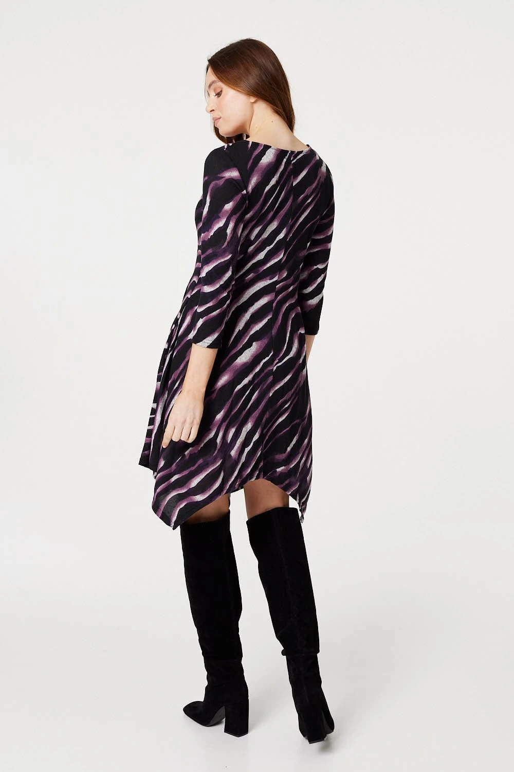 Add a go-to short dress to your closet with this printed fit & flare skater style. It has a round neck, 3/4 sleeves, a cinched waist and a short hanky-hemmed skirt sitting just above the knee. Pair with block heels or leather boots for a grab-and-go style that’s perfect for after-work drinks or dinner with friends.