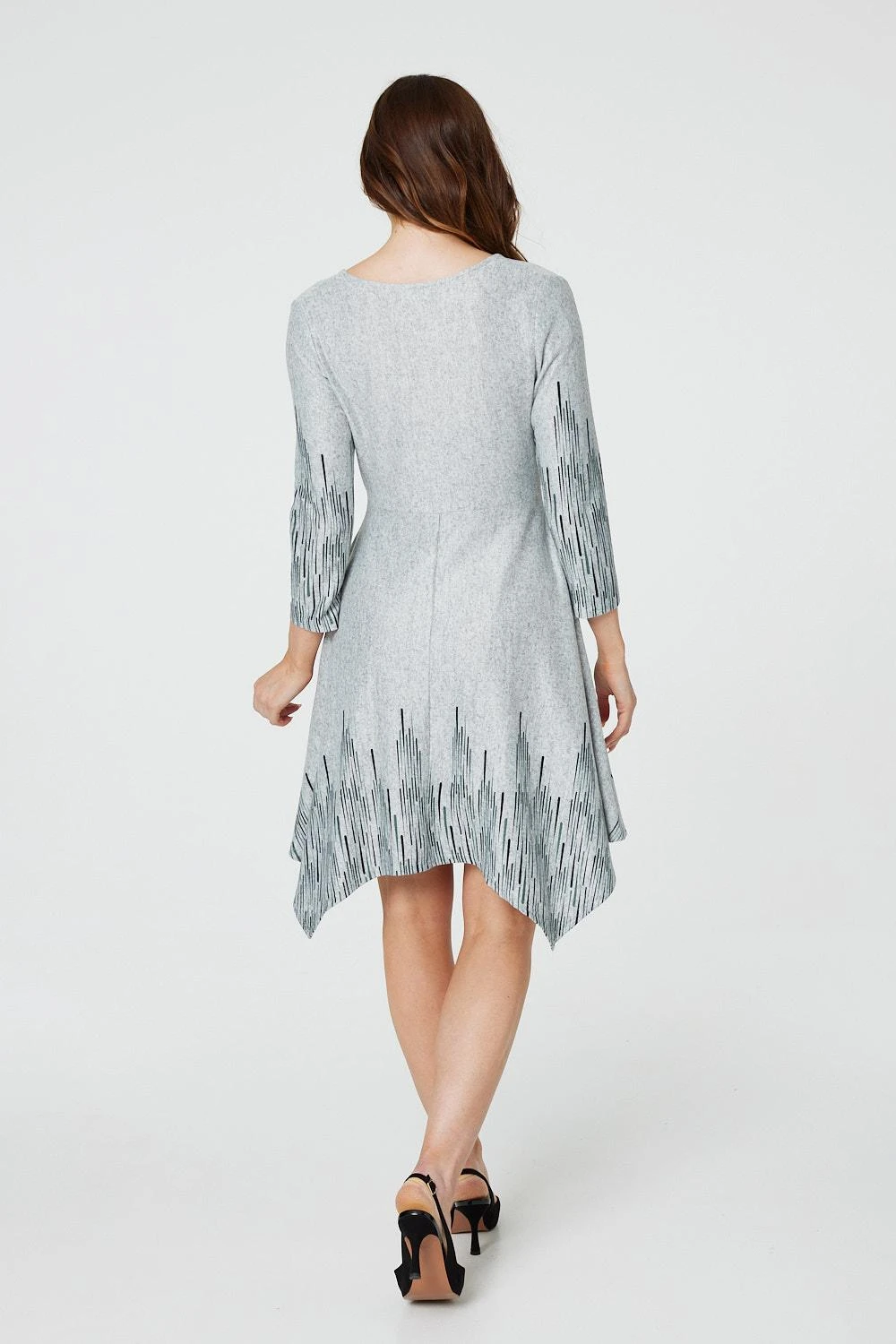 Add a sophisticated asymmetric look to your dress collection with this feminine hanky hem style. It has a v-neck with a faux wrap front, 3/4 sleeves, handy pockets, a fit & flare shape and a knee length skirt. Made from a non-iron stretch jersey fabric, it’s a great option for when you need to be occasion-ready in just a few minutes! Pair with neutral heels to complete your outfit.