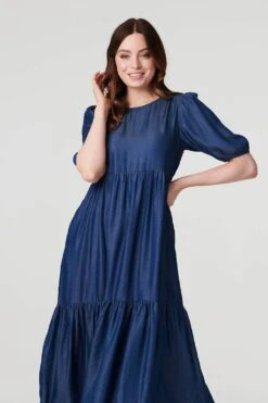 Every dress collection needs a hardworking everyday dress like this abstract print a-line midi. With a high round neck, long sleeves, a keyhole back and a midi skirt. Style with strappy heels for an elevated evening look or pair with knee high boots for a smart casual work outfit.
