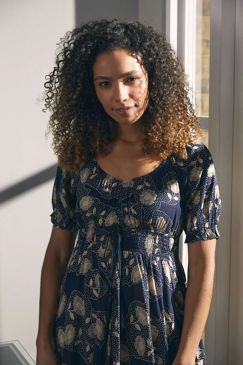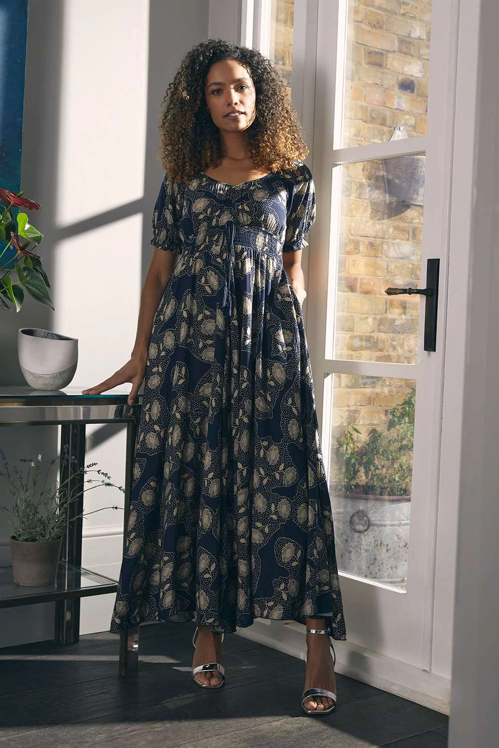 Every closet needs a comfortable maxi dress like this one. It has a v-neck, button front, frilled cap sleeves, a shirred waist, pockets and a flared maxi length skirt with a lace trim detail. Made from a breathable viscose fabric it’ll keep you feeling cool on a warm day. Pair with strappy heels or espadrille wedges for a standout daytime style.