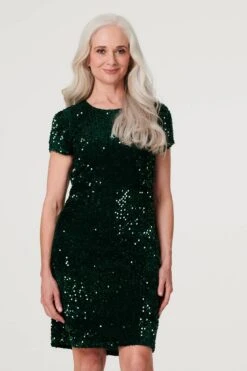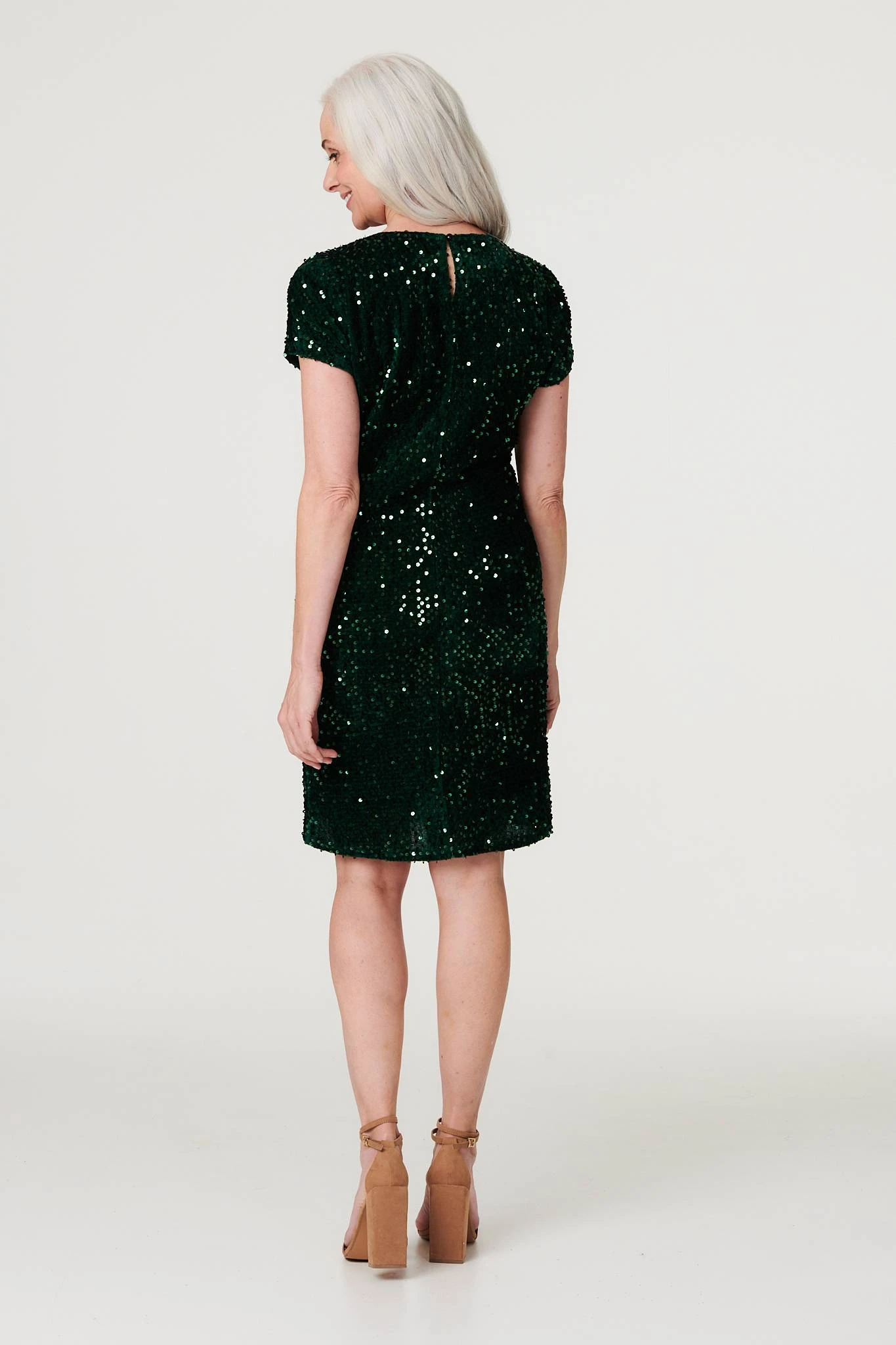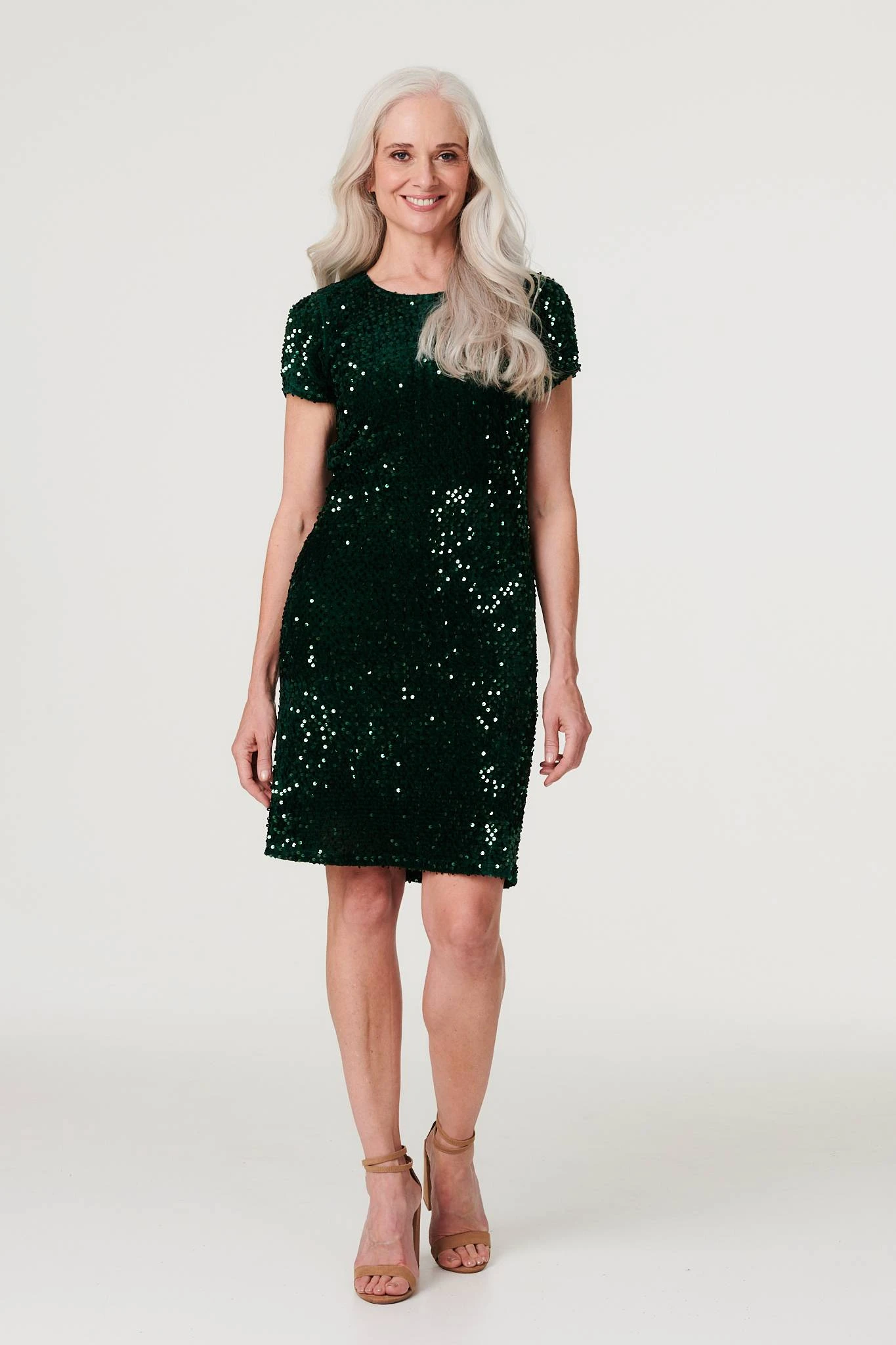 Make an impact in this sequinned shift dress. With a round neck, short sleeves, a keyhole back closure and a knee length hem. Pair with heels and an elegant clutch bag for a style that’s sure to dazzle at any party.