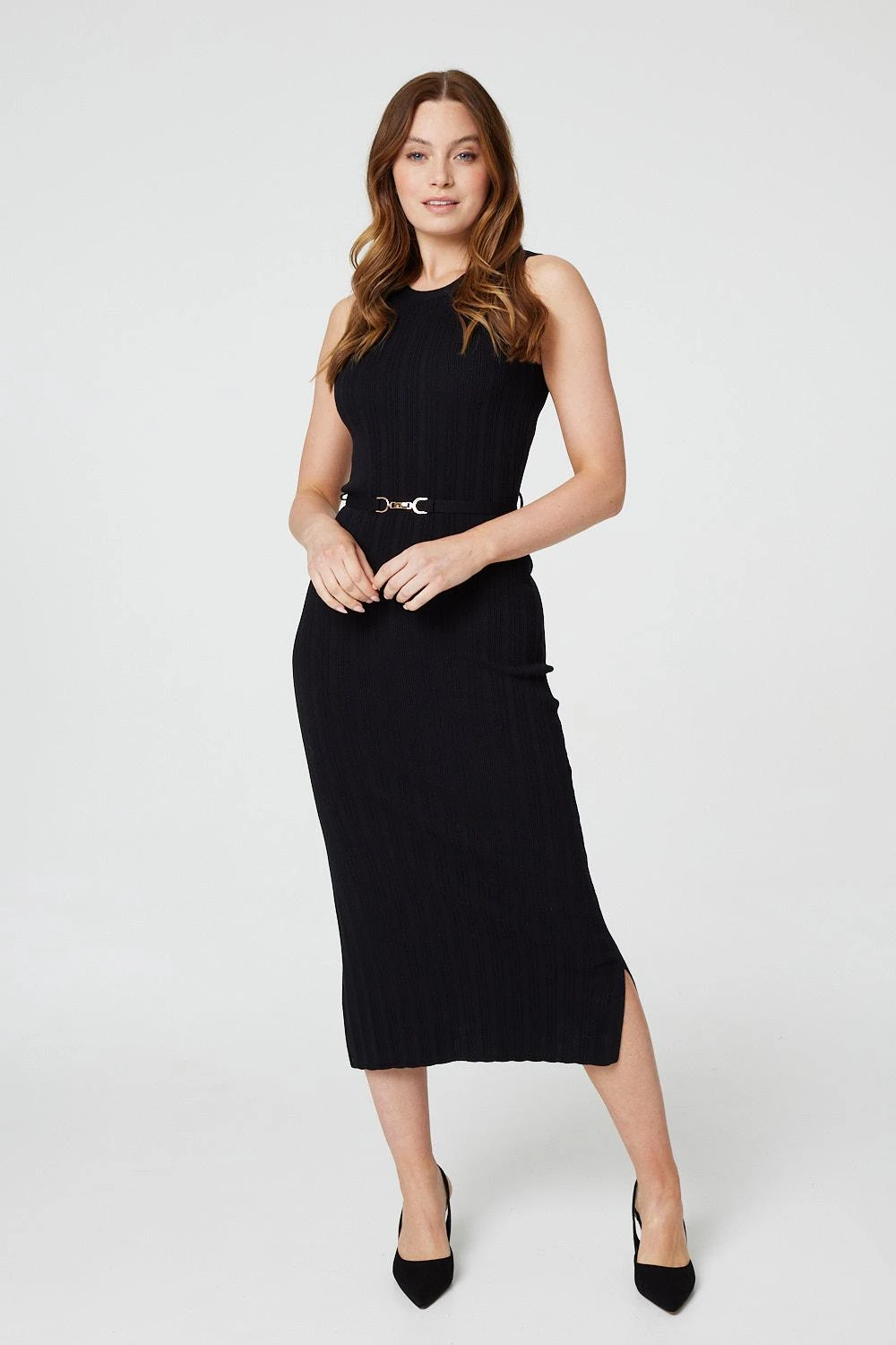 Update your little black dress style with this elegant fitted shift dress. It has a round neck, sleeveless fit, a detachable belt, bodycon shape and a midi length hem. Pair with black heels for a classic look you can wear on repeat at any time of the year.