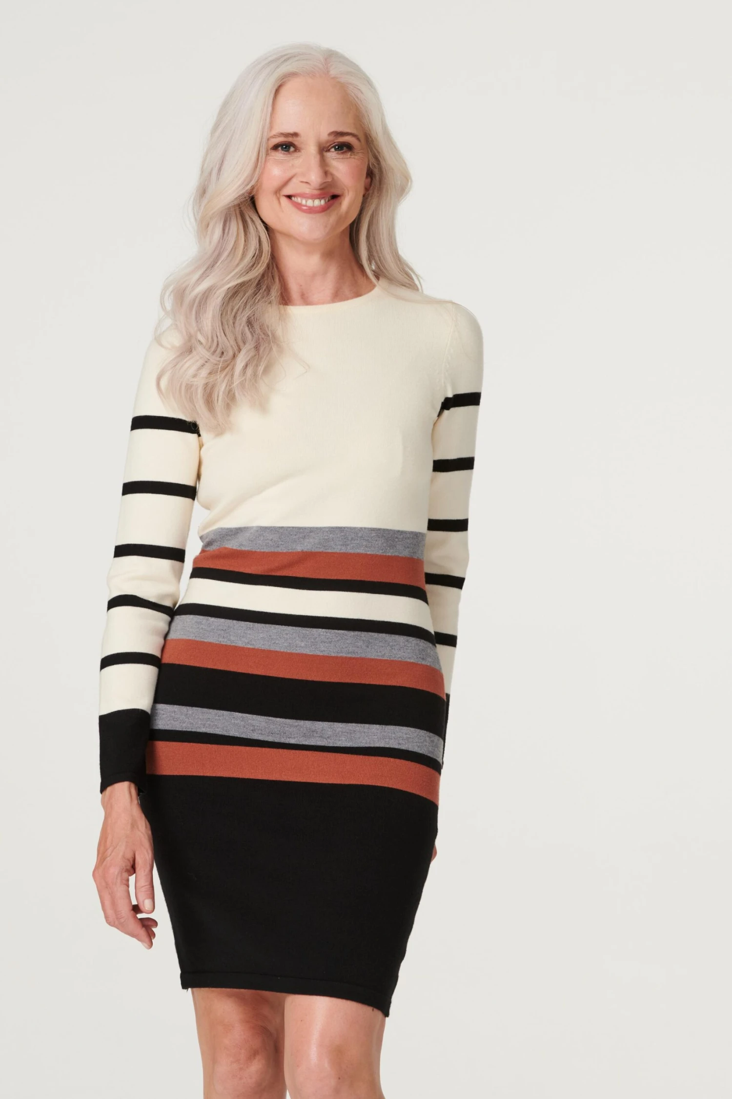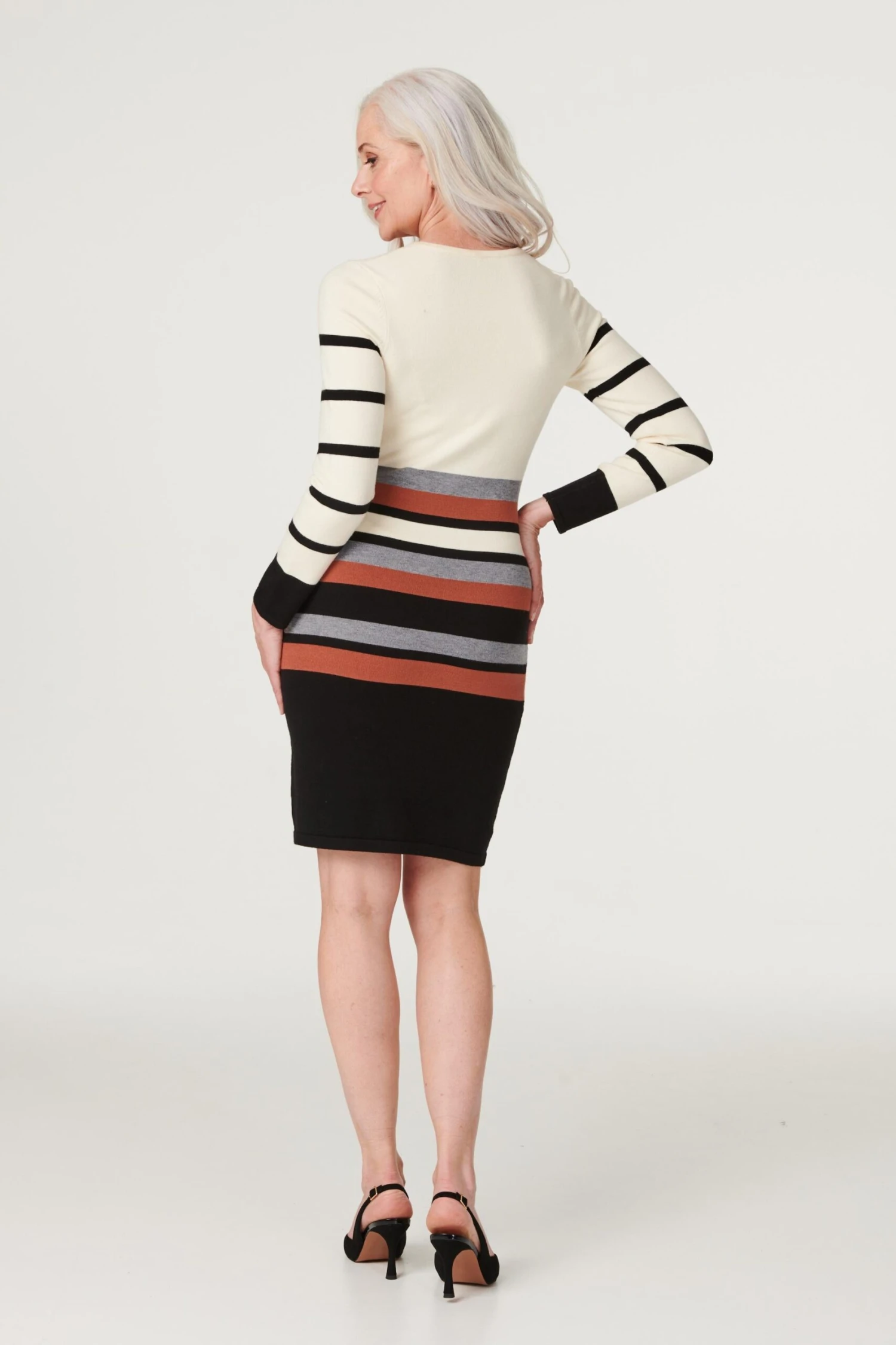 Refresh your new season closet with this figure-hugging knitted short dress. It has a round neck, long sleeves a bodycon silhouette and a short hem sitting just above the knee. Made from a viscose-blend fabric, it’s a great lightweight option to transition towards colder weather. Pair with closed-toe court shoes for an elegant style that would work equally well for both daytime and evening wear.