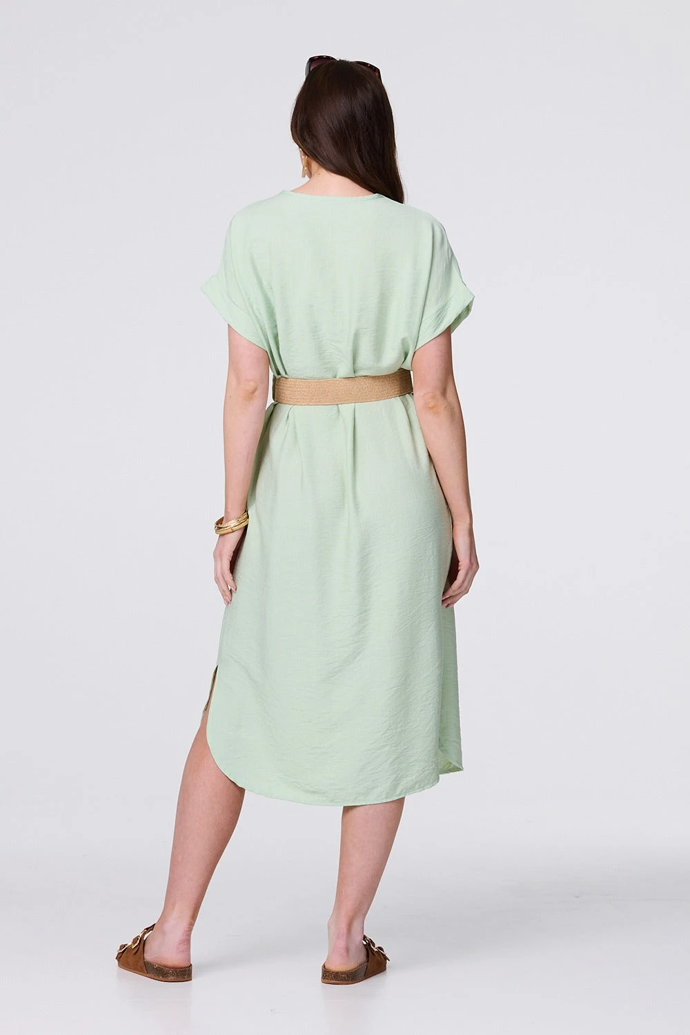 Make a refined statement this season in this v-neck tunic dress. With a v-neck, short drop shoulder sleeves, a removable braided belt, pockets and a midi skirt with side vent splits. Style with sandals and a cross body bag for an effortlessly comfortable outfit for every day errands.