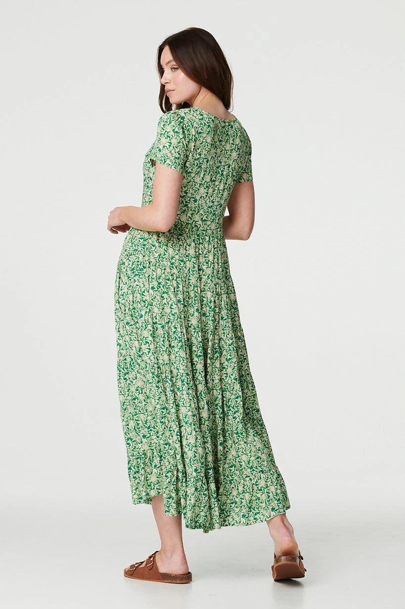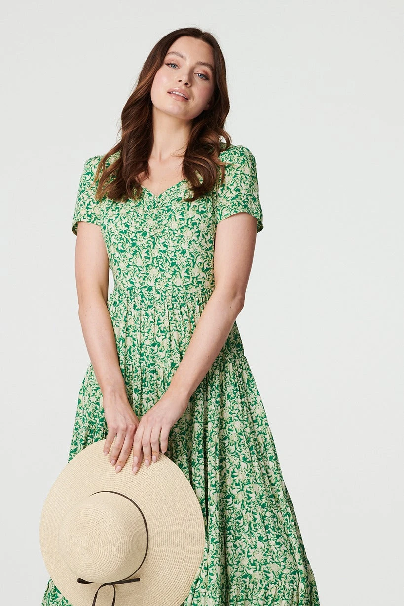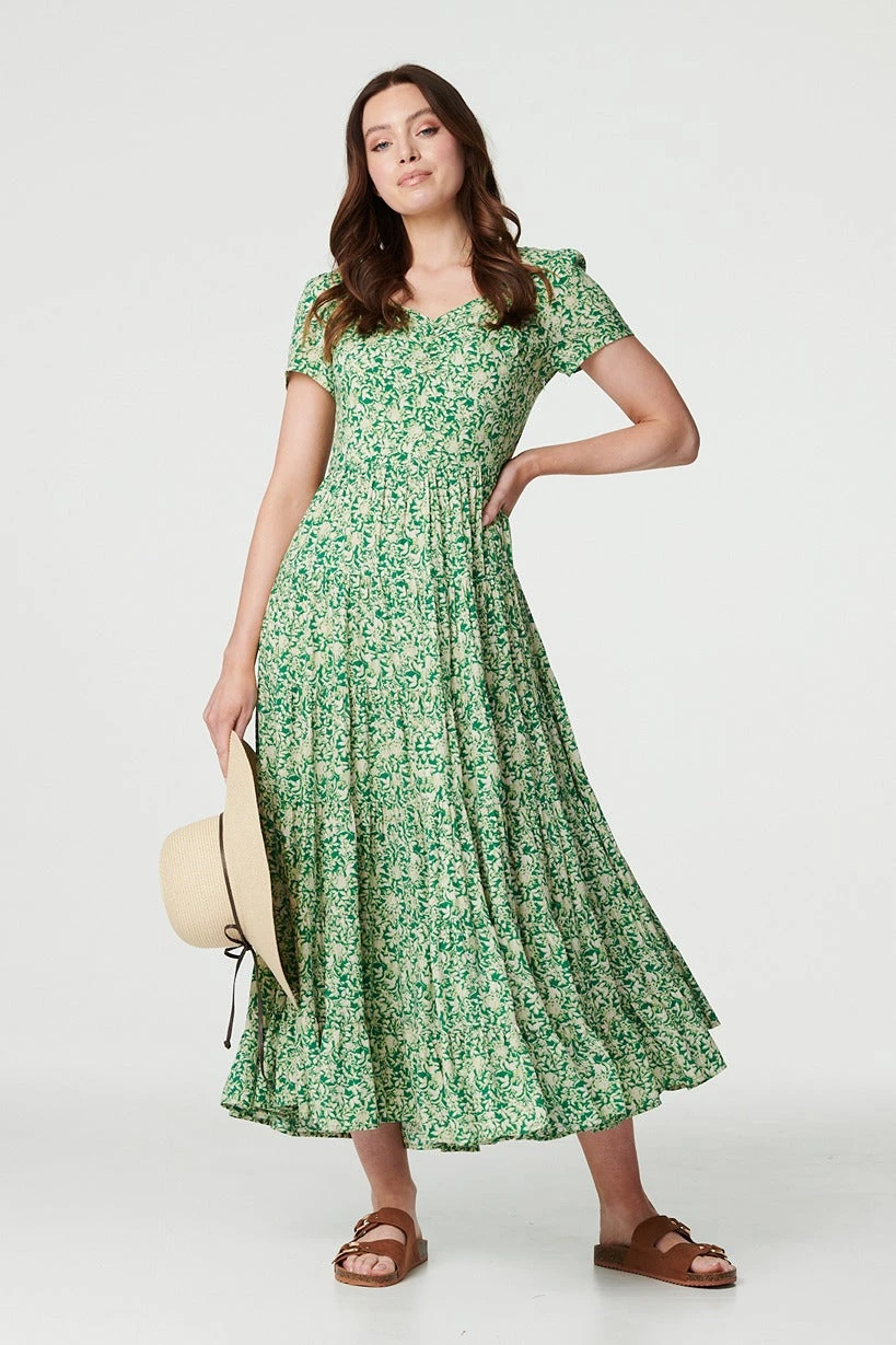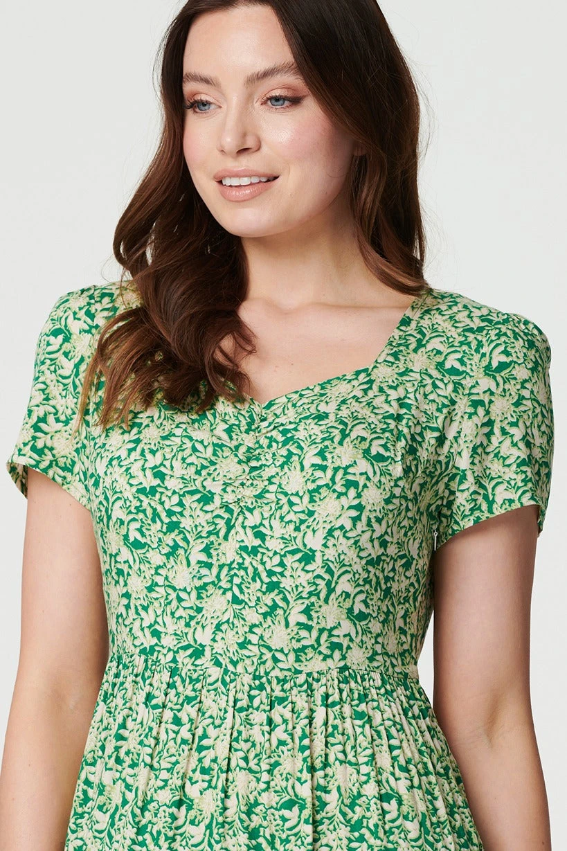 For a timeless and feminine silhouette, try this pleated midi dress. It has a flattering sweetheart neckline with short sleeves, a shirred bodice and a pleated skirt. The midi length hem looks stylish all year round – just pair your favourite sandals to look effortlessly cool on a hot day.