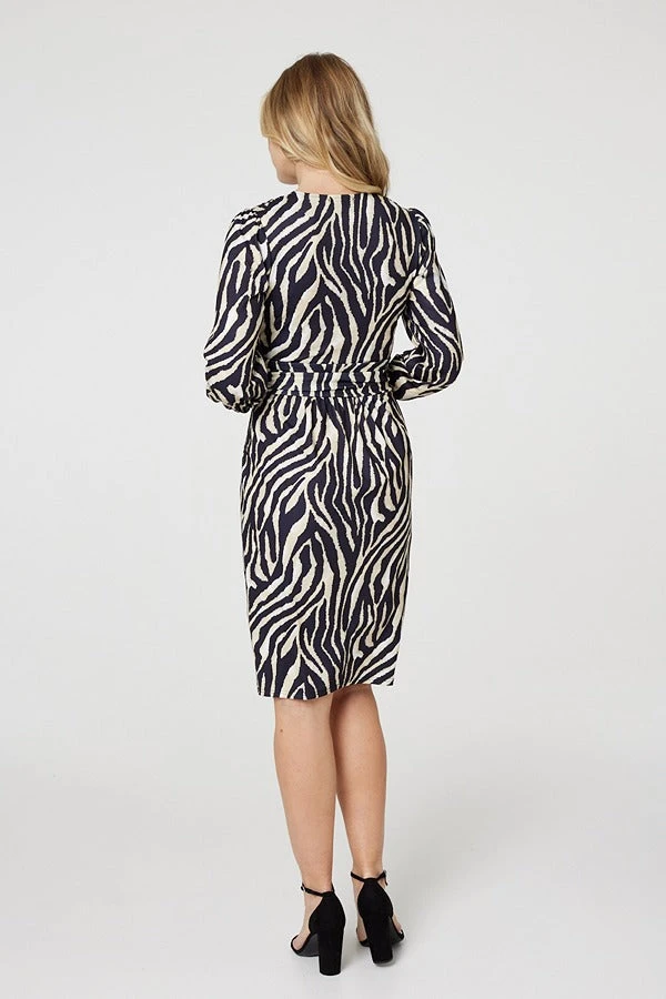 Get a sophisticated and elegant look in this wrap dress. It has long sleeves with cuffs, a stylish v-neck and a flattering wrap waist. The knee length hem makes it perfect for work, special occasions and formal events.